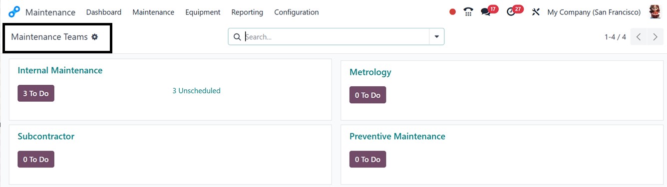 Configuration menu and select the ‘Maintenance Teams’ option. Here,