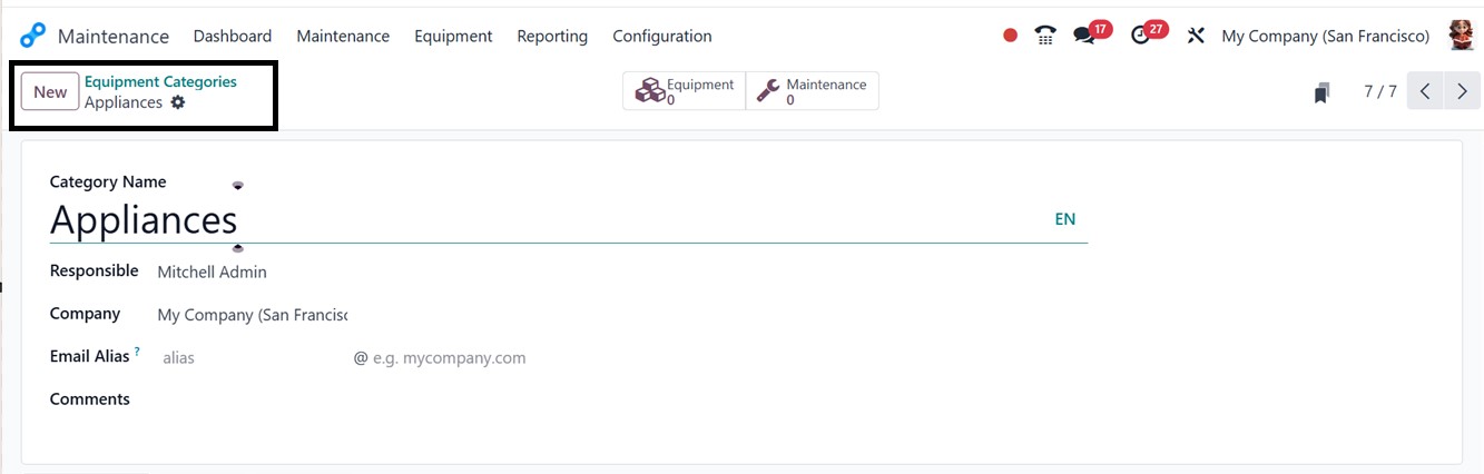 In the Odoo 18 Maintenance module, users can designate maintenance