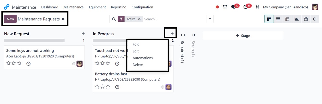 New maintenance requests can be added quickly using the ‘+’ symbol