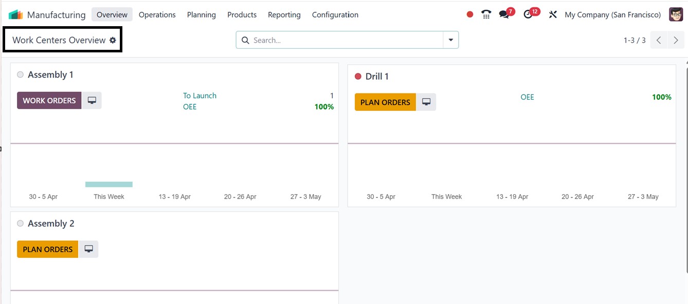 the manufacturing module, users are presented with a dashboard