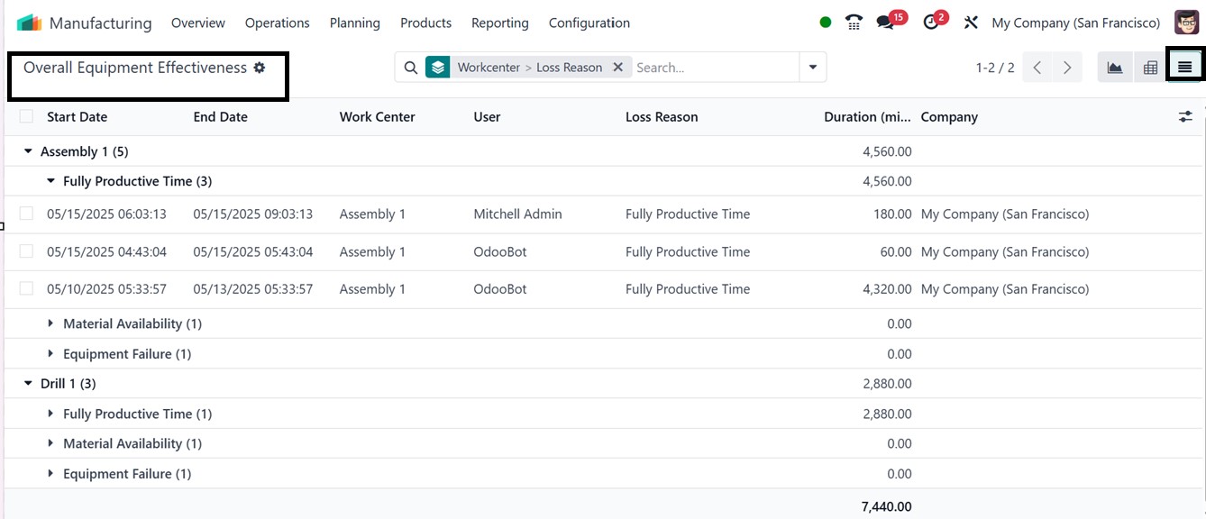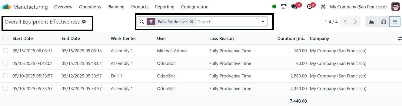 Effectiveness (OEE) reporting
