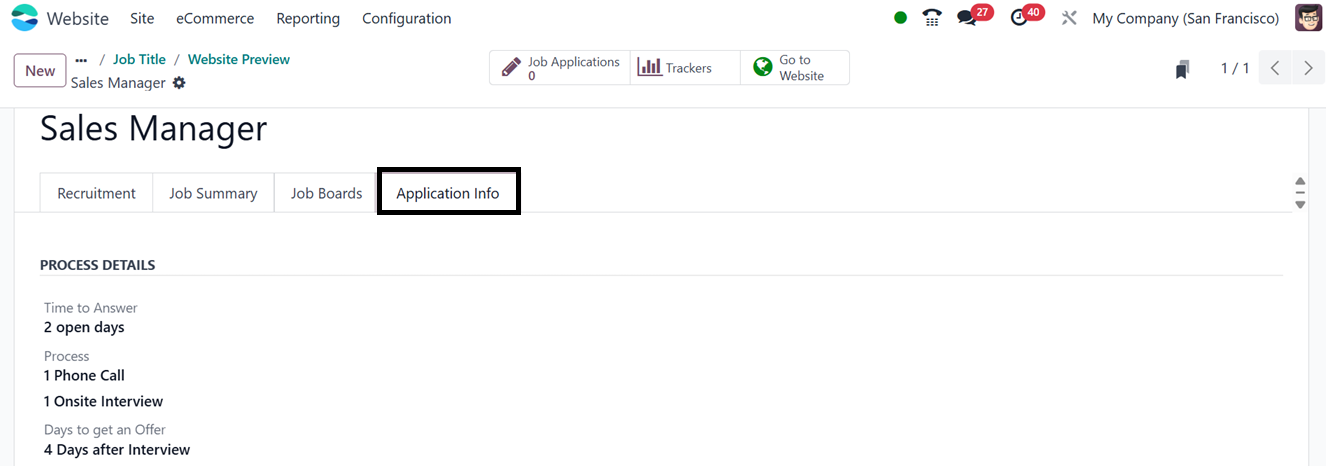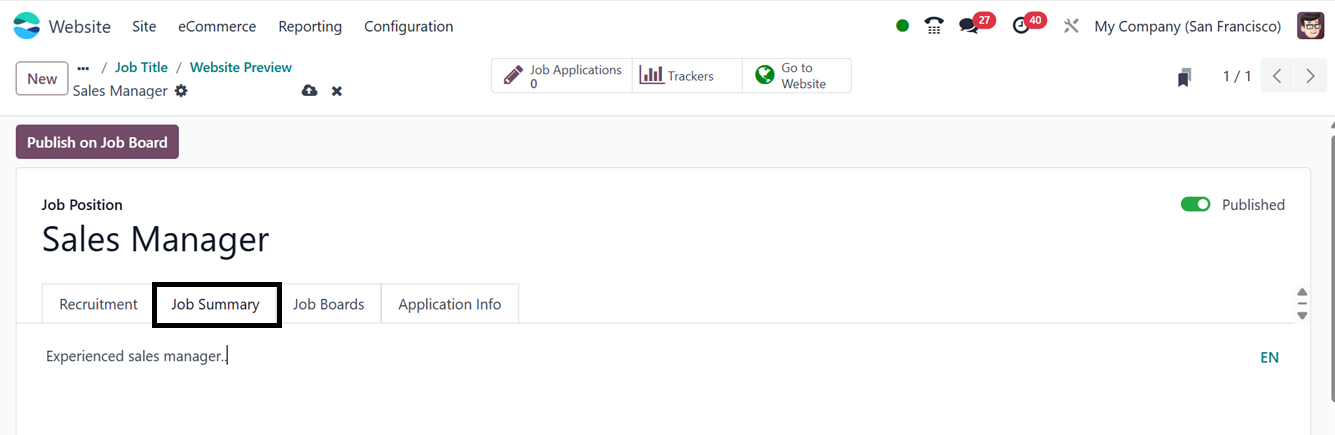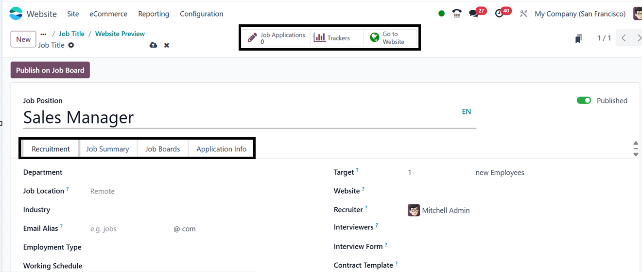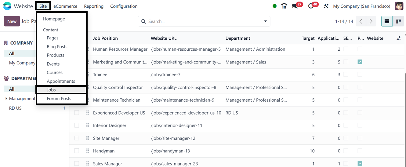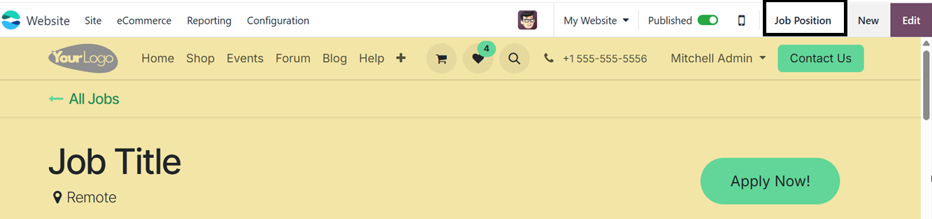 the Job Position inside the ‘Jobs’ option from the ‘Site’ tab. Here,