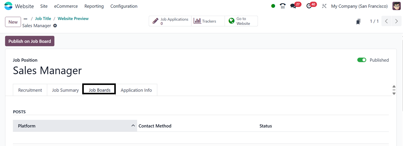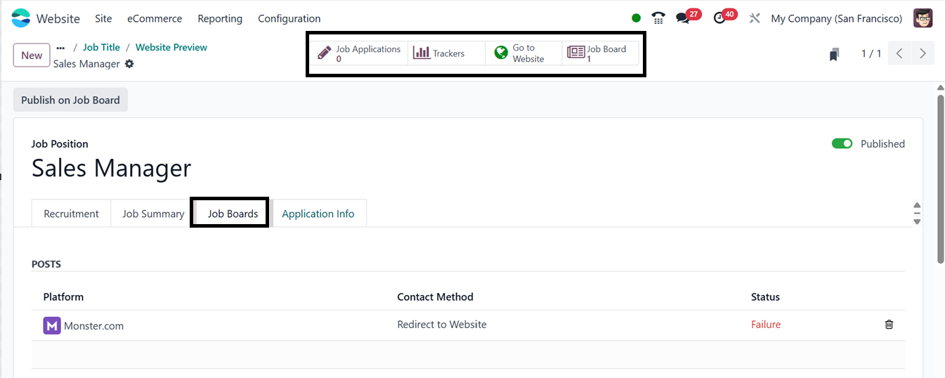 Board" smart button and the "Job Boards" tab will display any online
