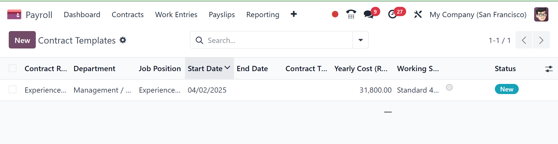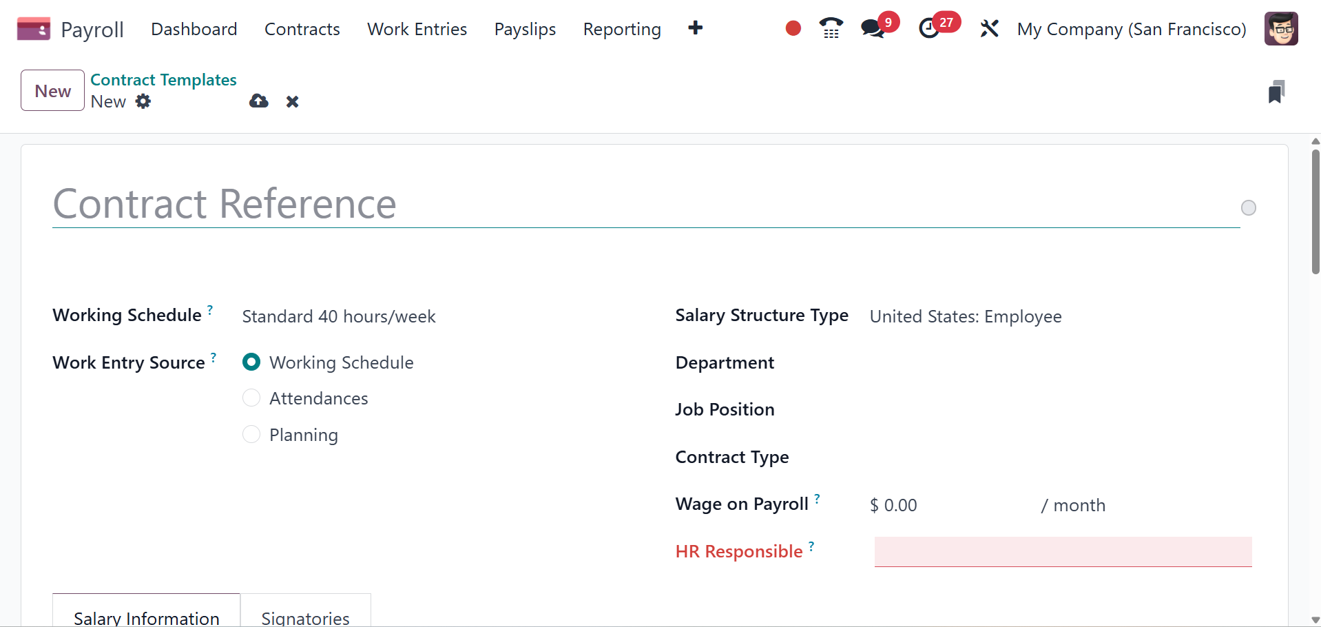 Payroll: under the payroll tab, you have the options like contract