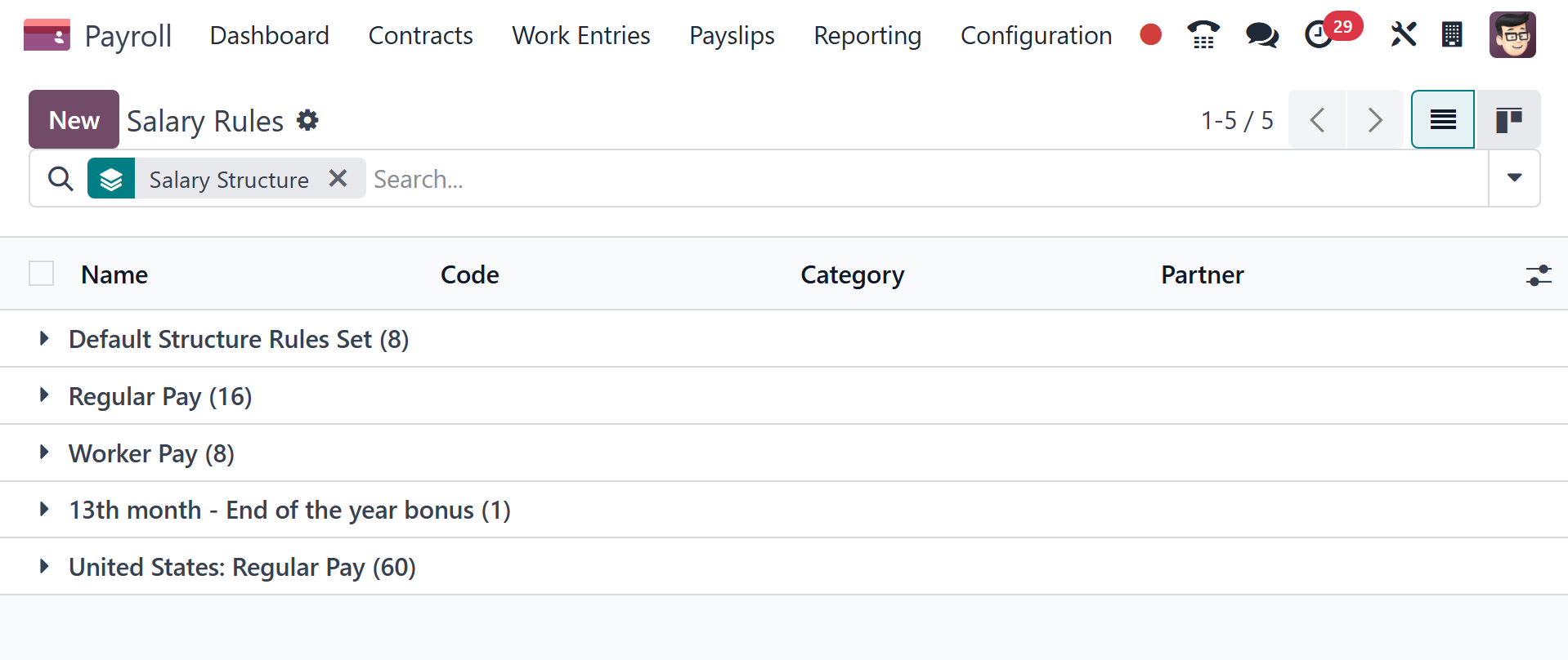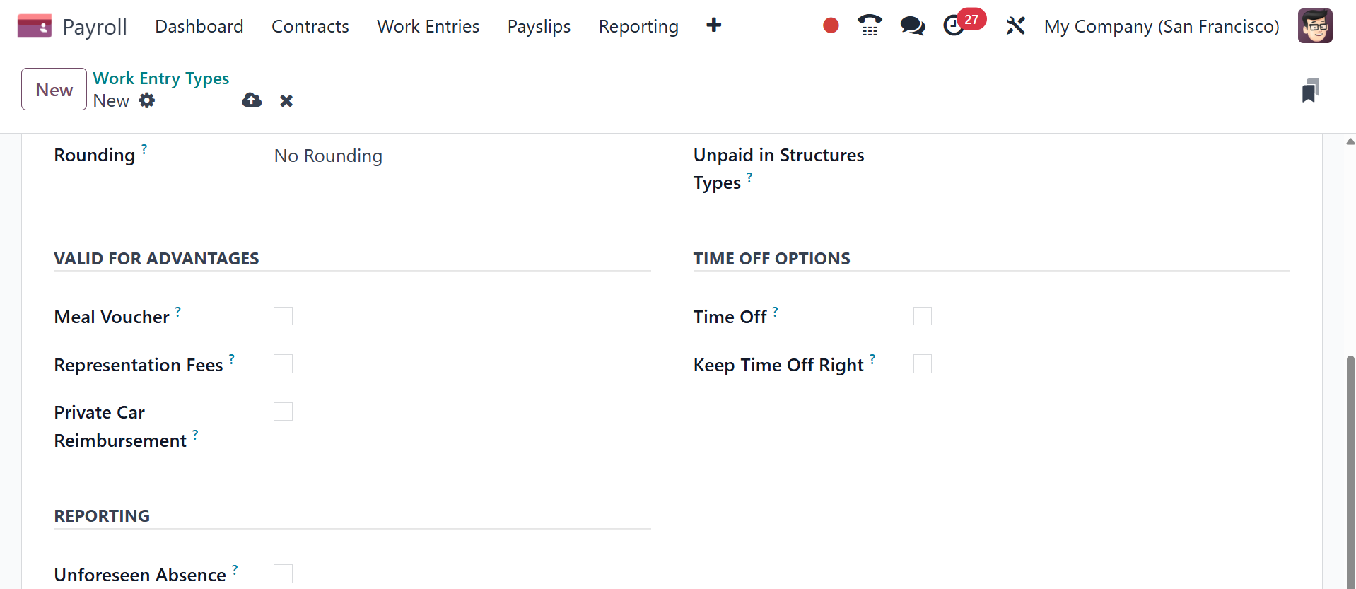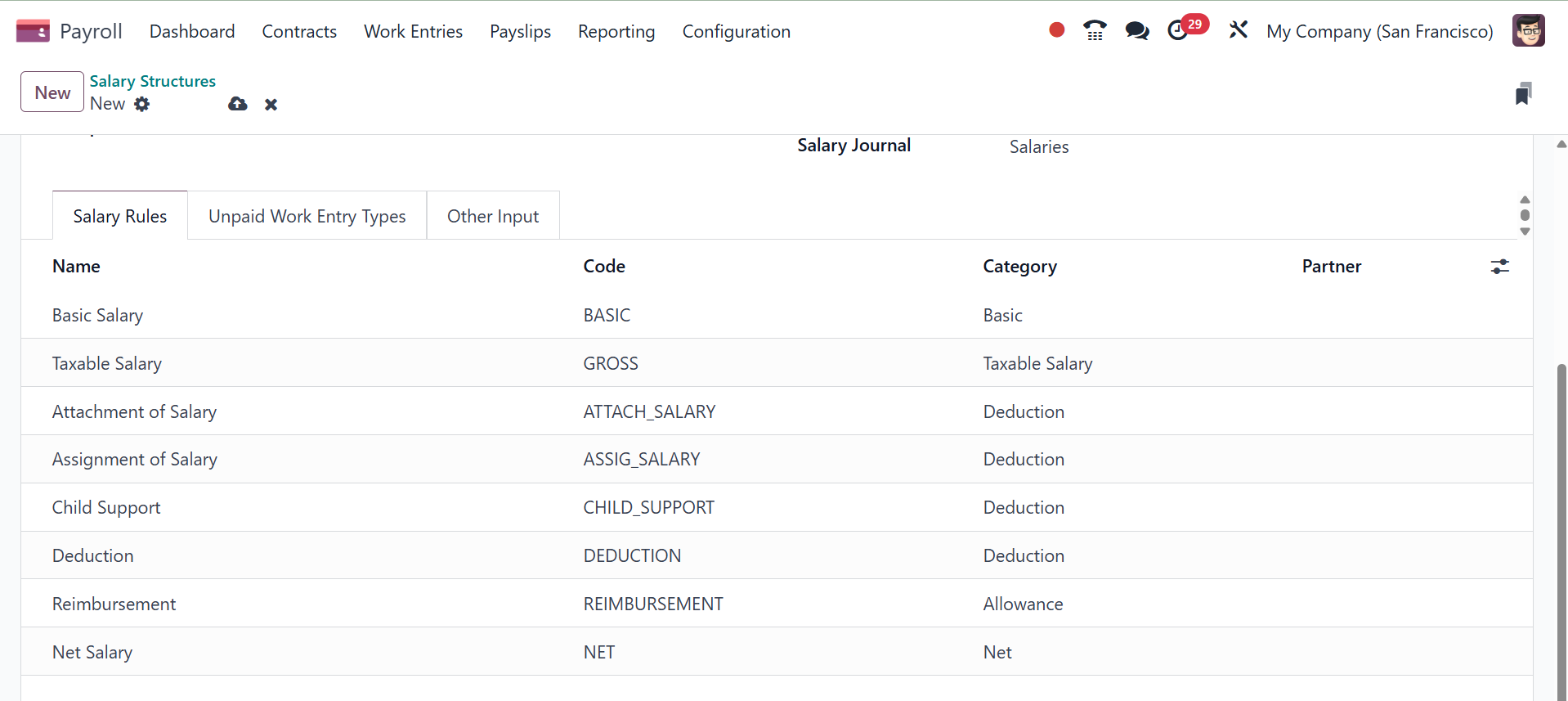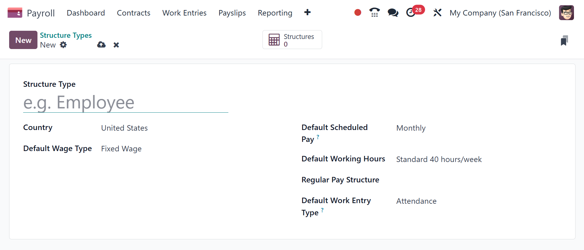 It is possible to configure new types of salary structures in Odoo 18
