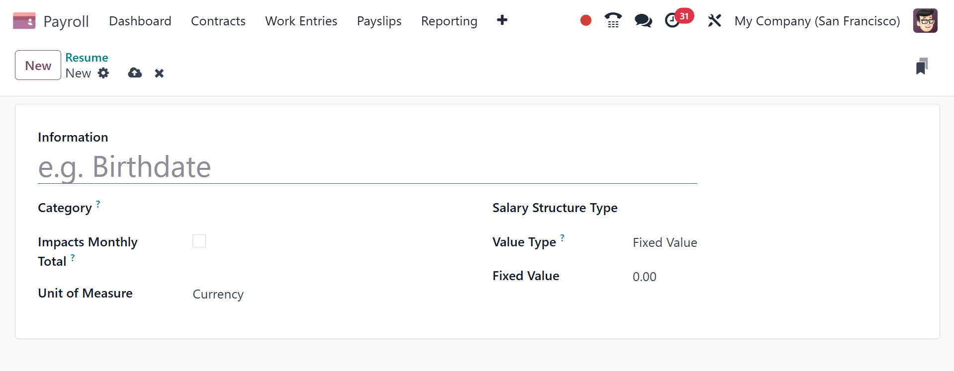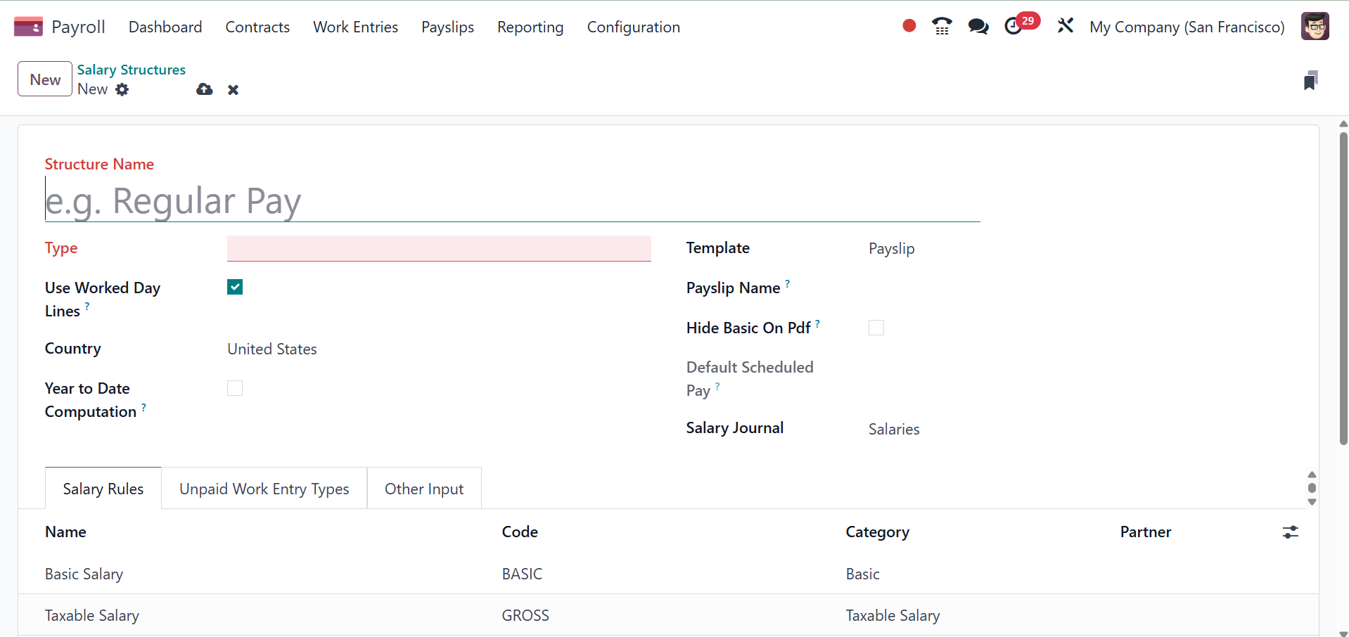 Salary Structure Type: select one of the salary
