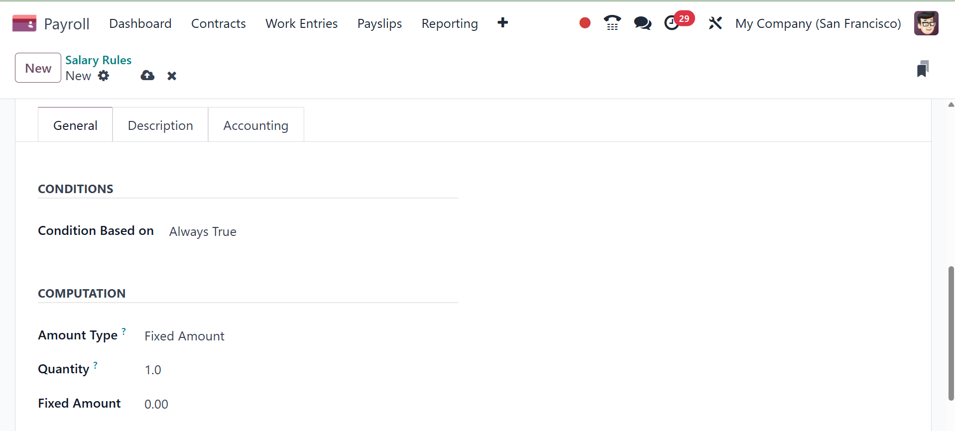 All of these details are automatically saved by Odoo 18 Payroll.