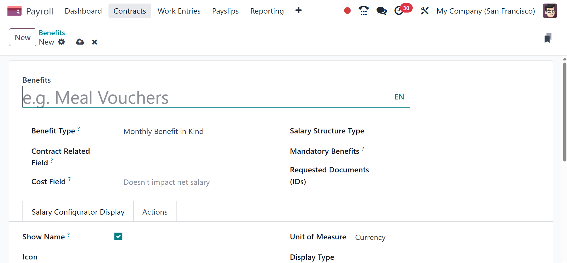 checkbox to have the benefit name appear in the salary package