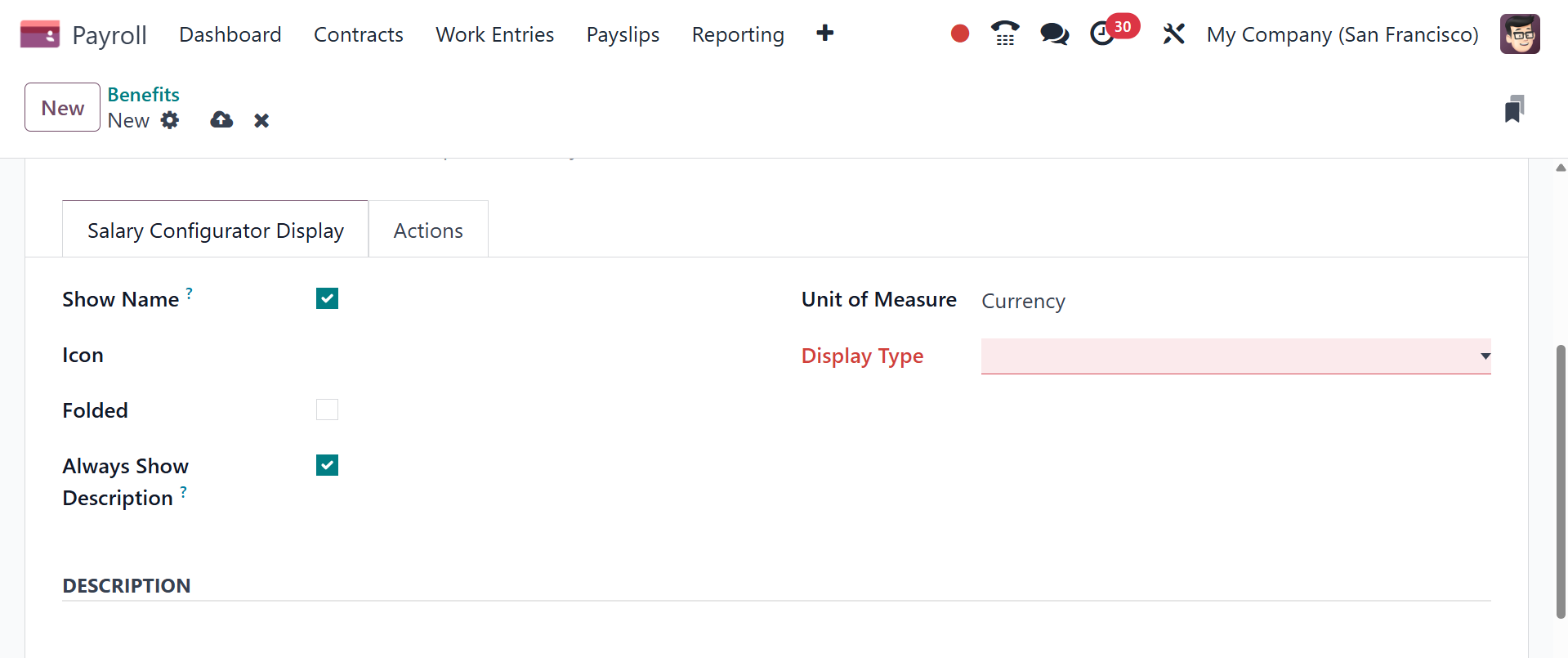 Salary option. For benefit, we can later specify Currency, Days, and