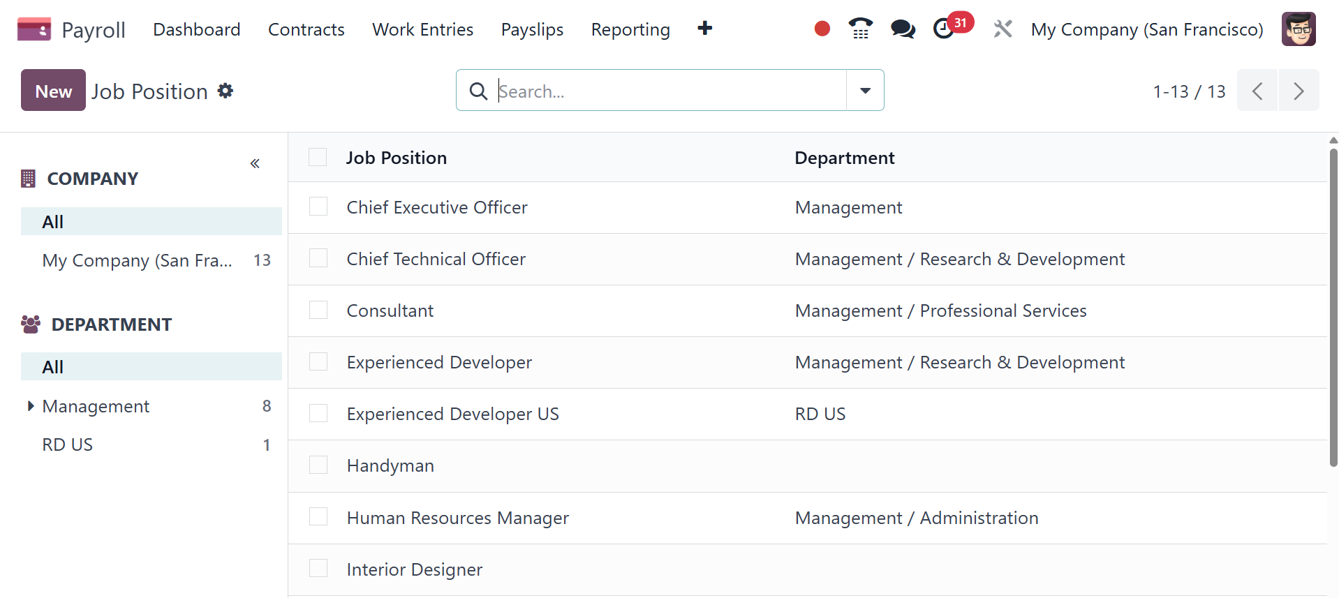 Here, you will get the list of already configured job position and