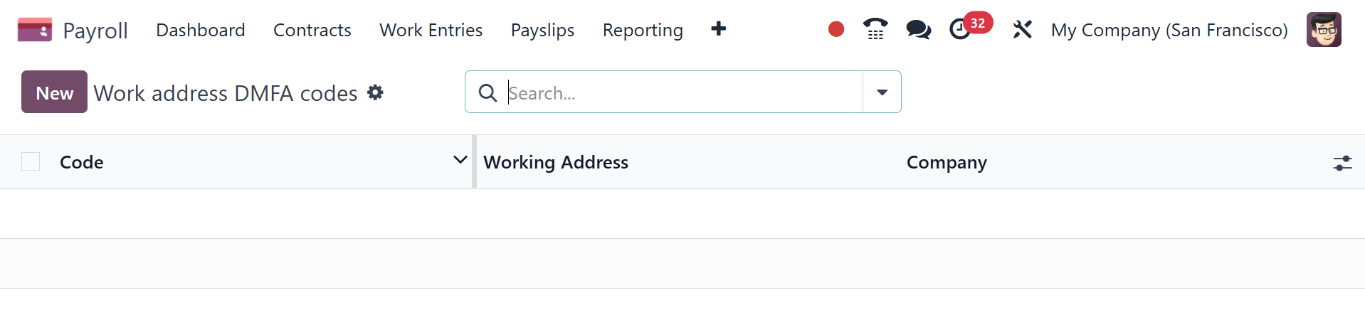 The Work Address DMFA Codes are included in the Configuration menu of