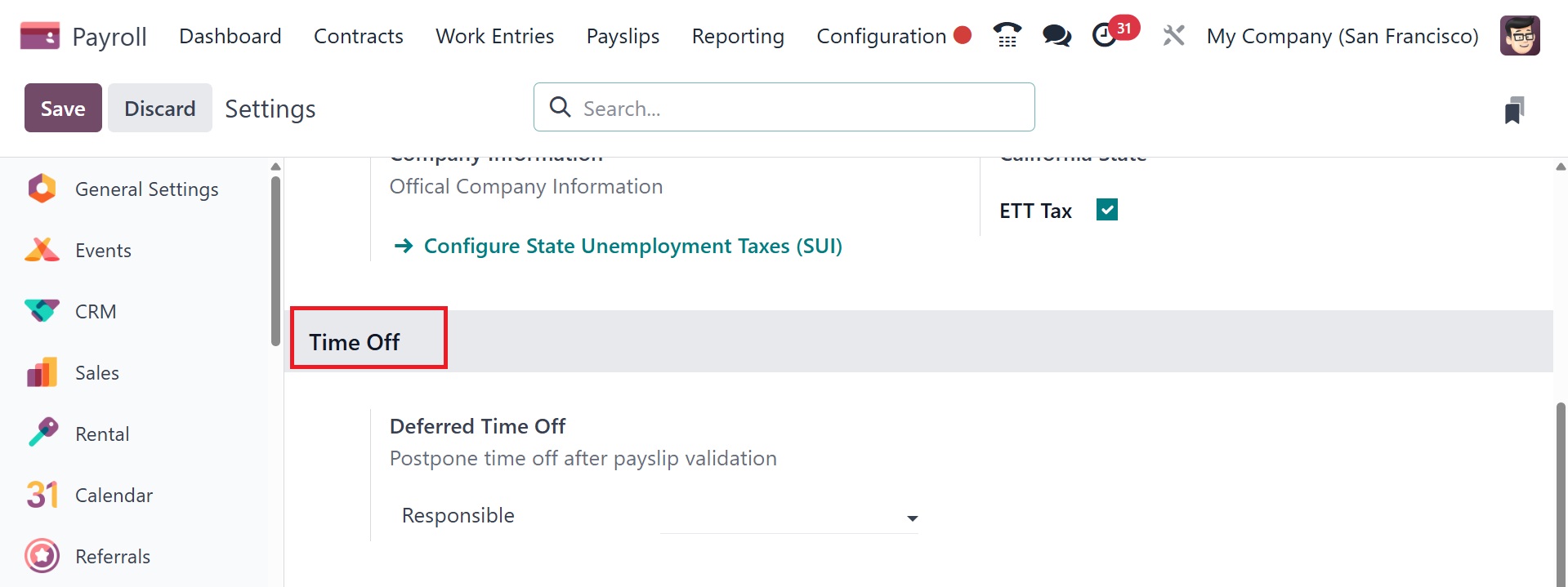 Time Off: The "Deferred Time Off" option can be enabled in this area.