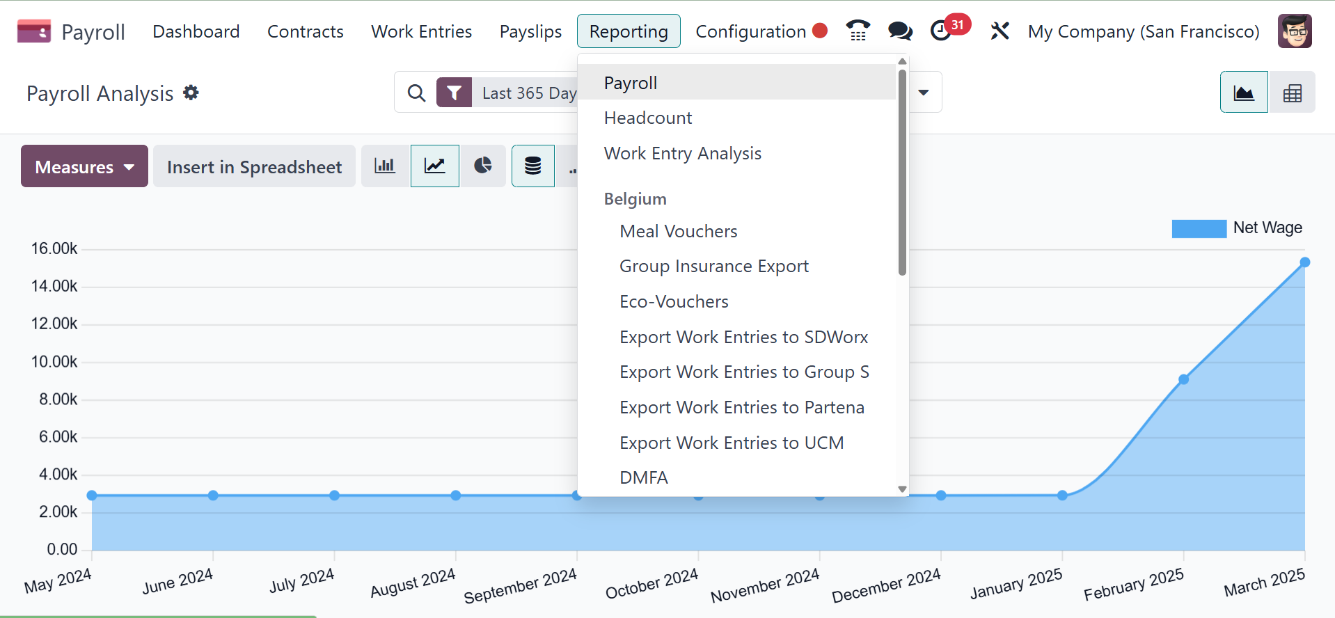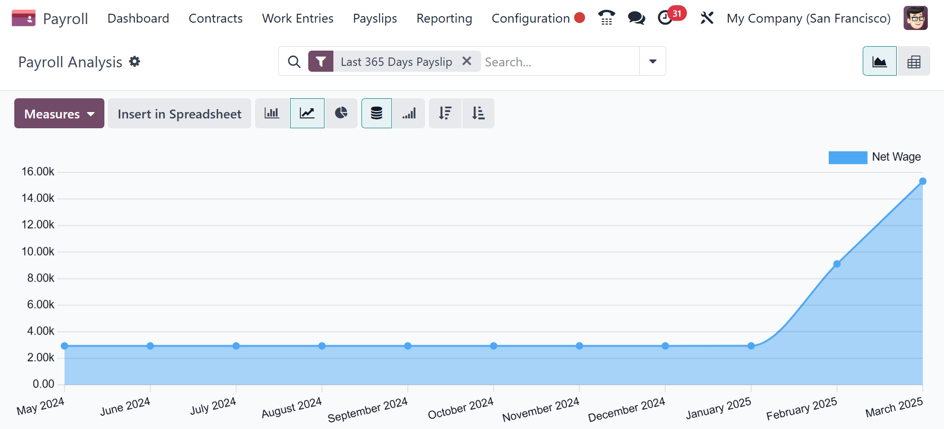 from the Reporting tab. The graph of the Payroll Analysis window