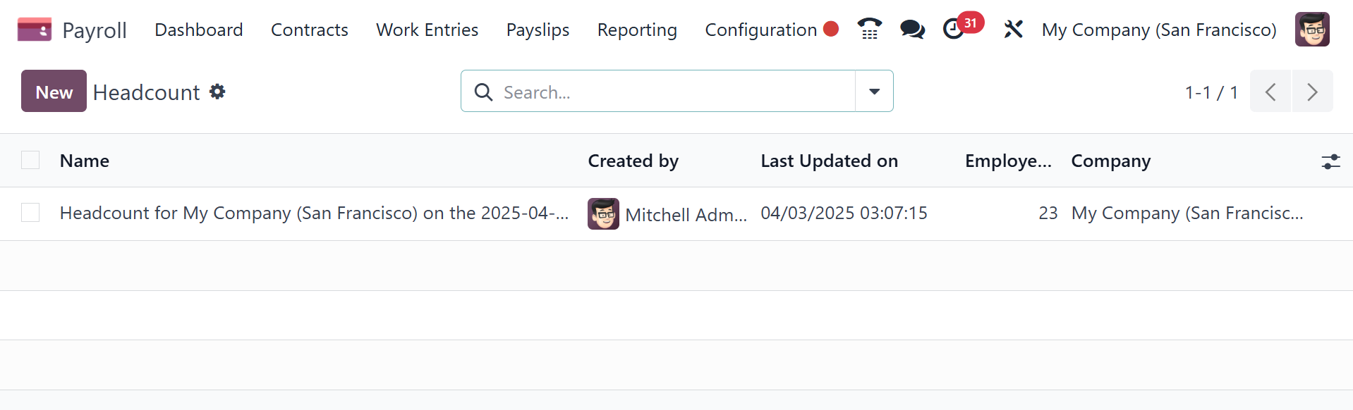 seen in the Headcount report under the Reporting menu.