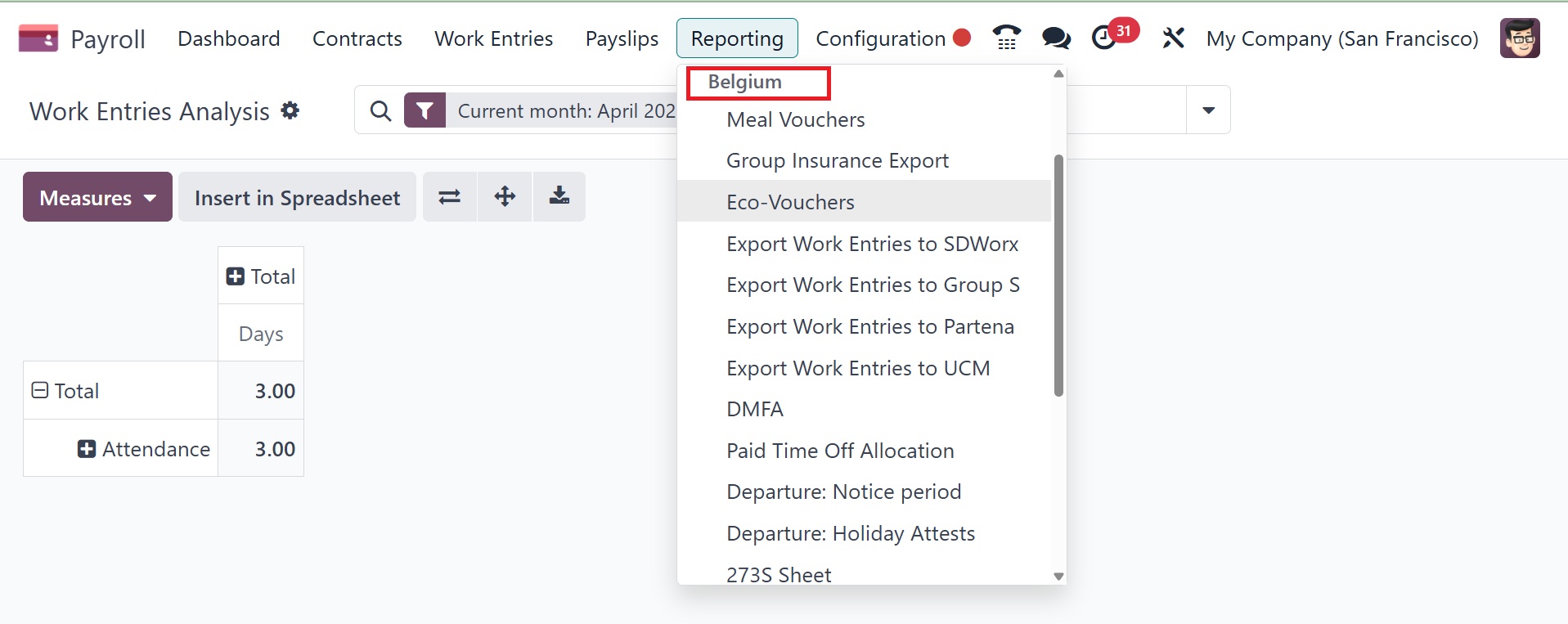 are available in the "Belgium" area of the "Reporting" menu. The