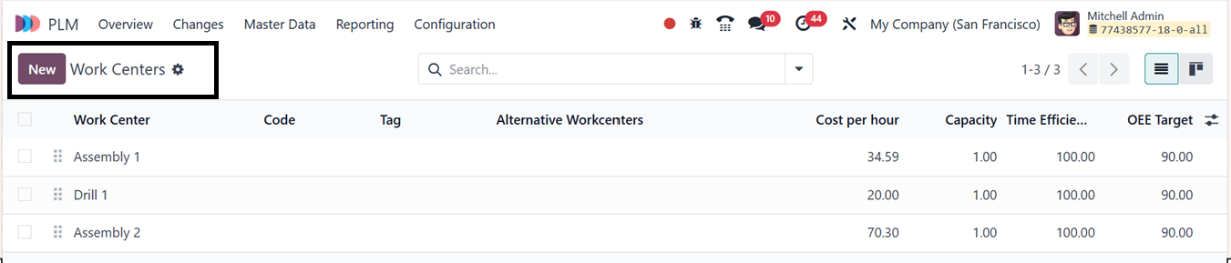 Work Centers in Odoo 18's PLM (Product Lifecycle Management) module
