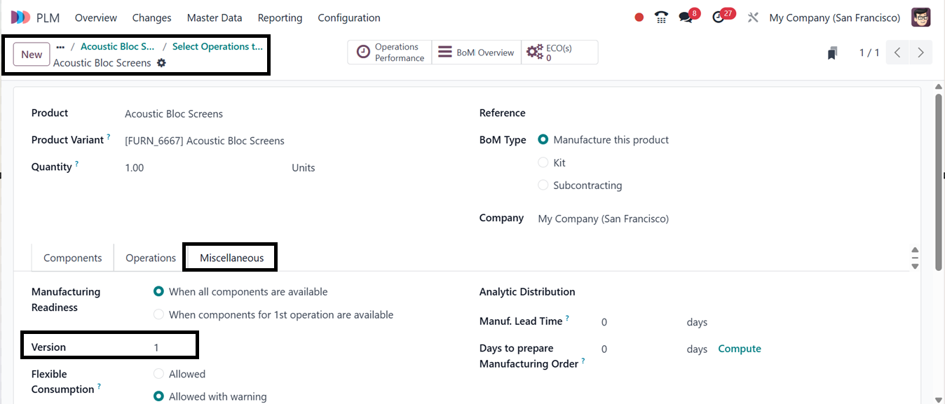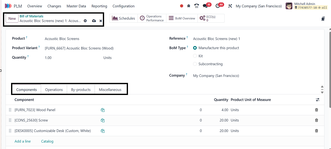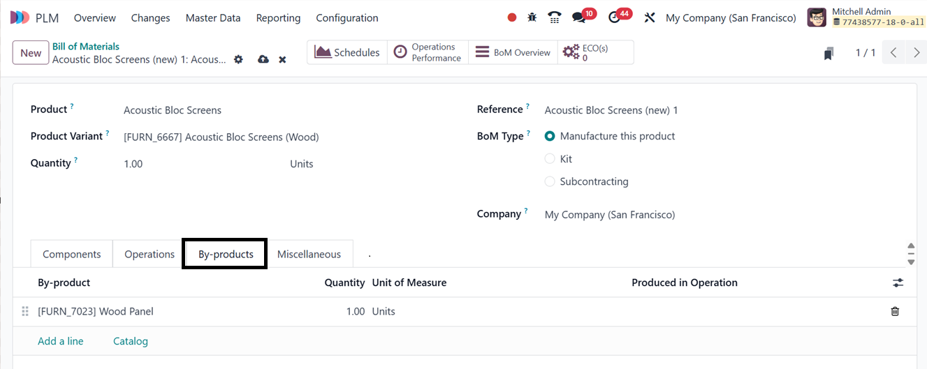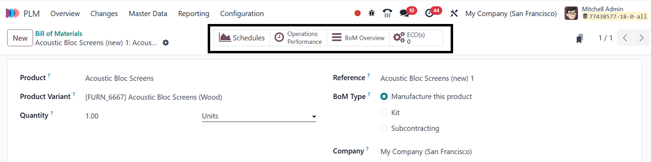 Operations Performance Smart button feature. Use the BoM Overview