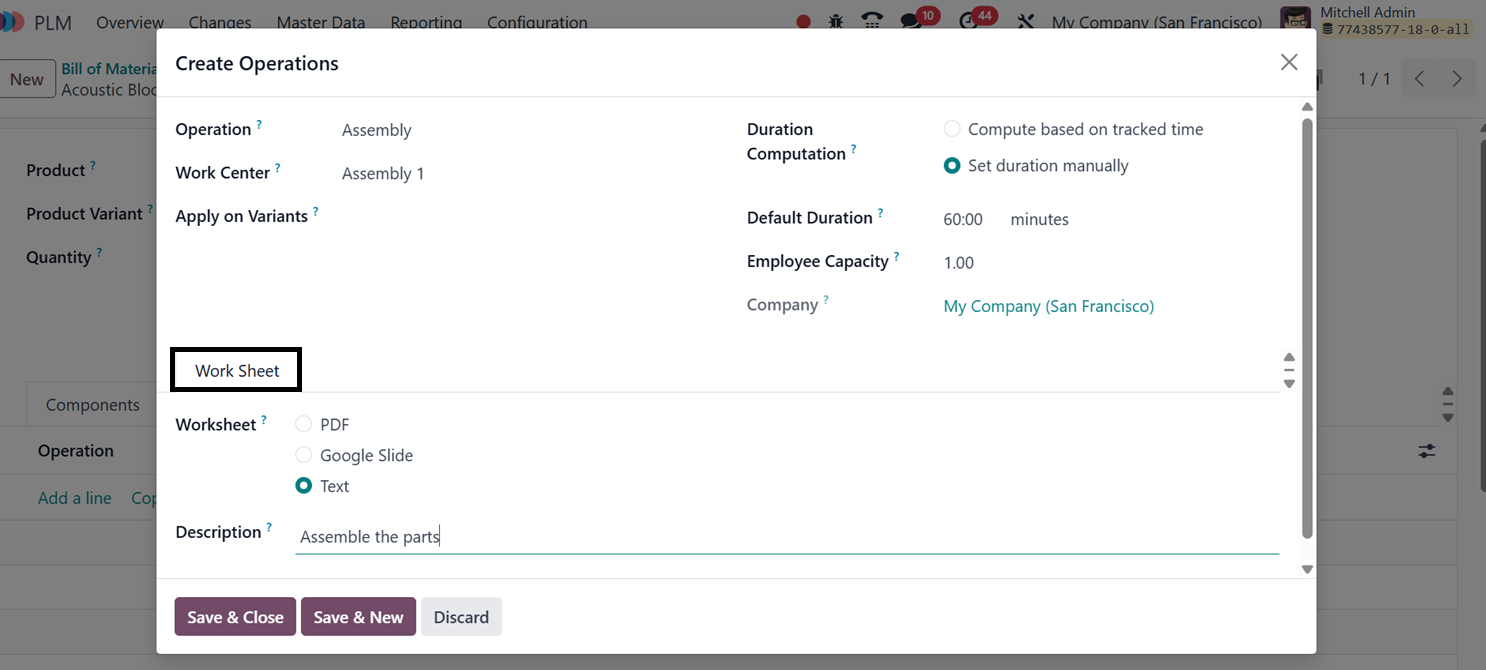 specify the sequence of BoM actions, you may also activate Operation