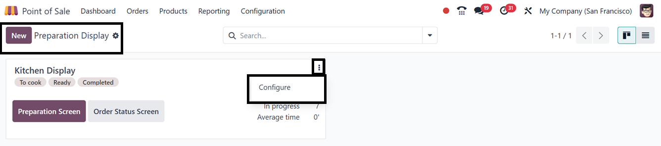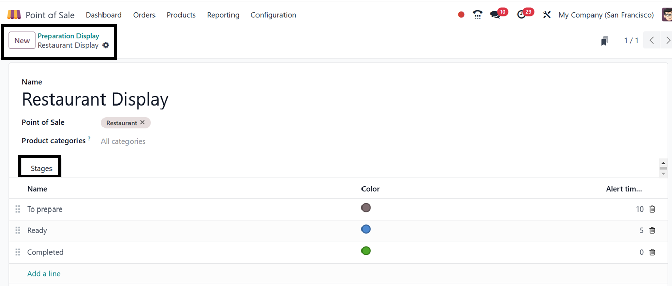 To create a new Preparation Display, click on the “New” button and