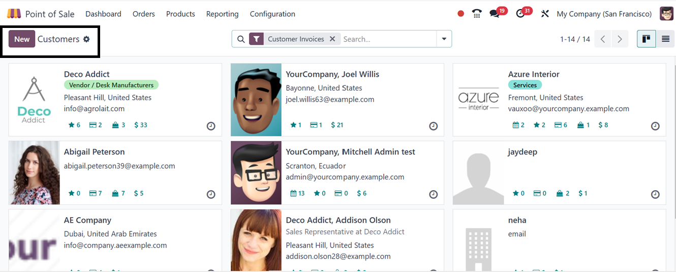 start editing the Display Name, Point of Sale sessions and Product