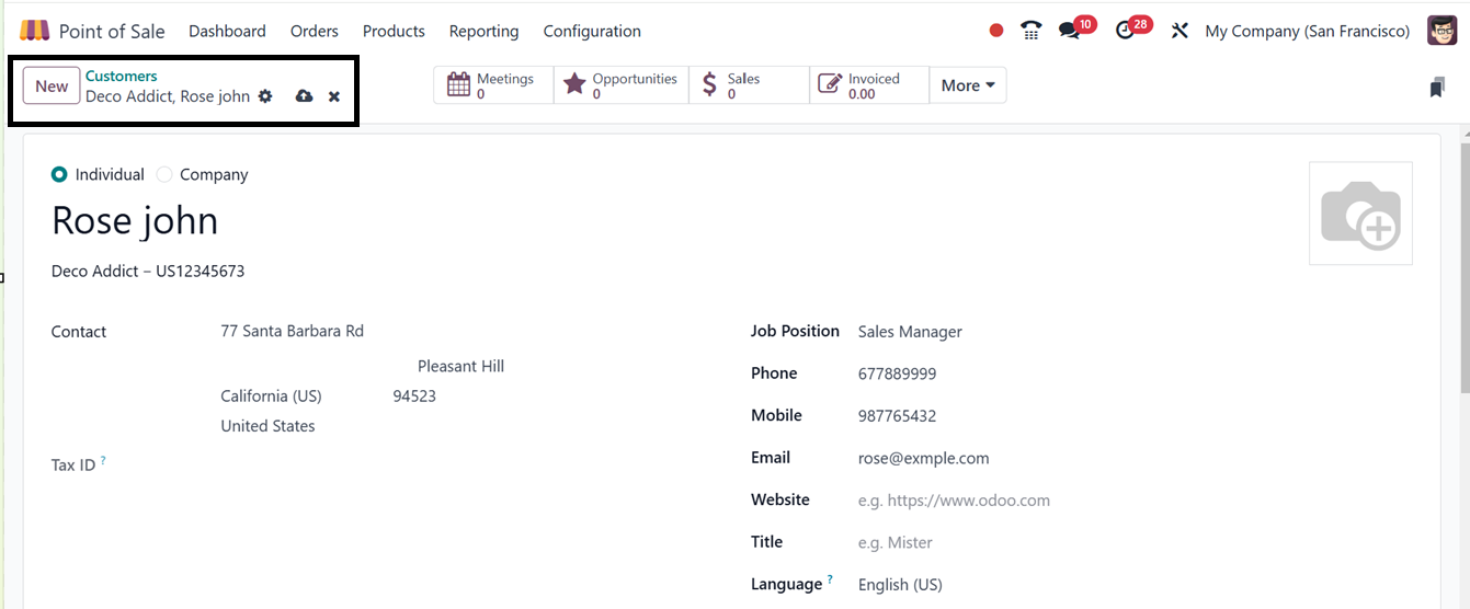 details such as Name, Company, Address, and other Contact