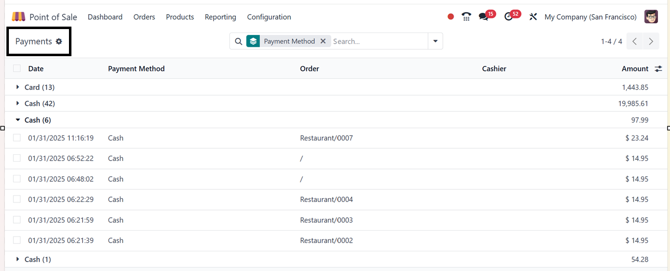 The Orders menu's "Payment" option allows you to manage all the