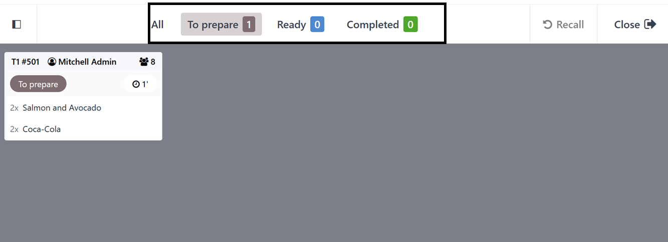 the current order in a full screen mode as shown below.