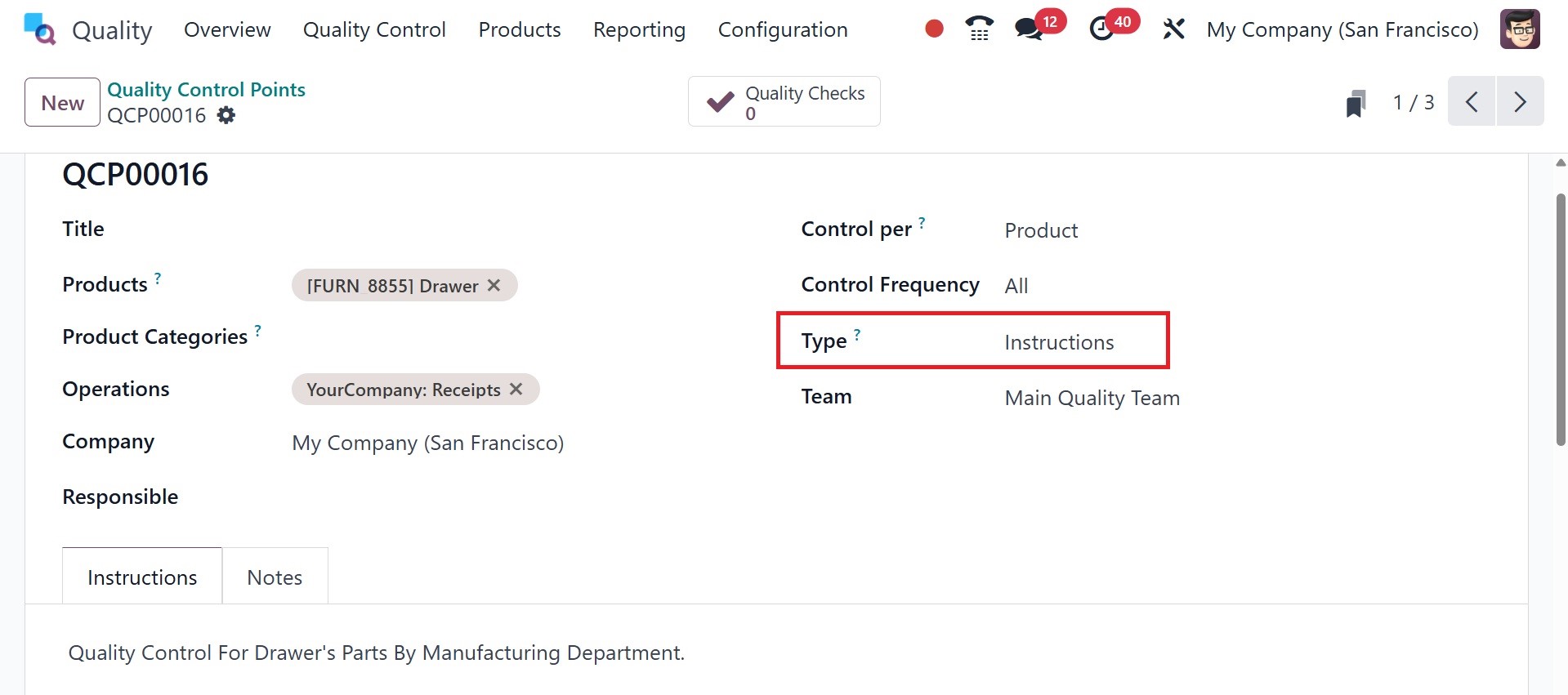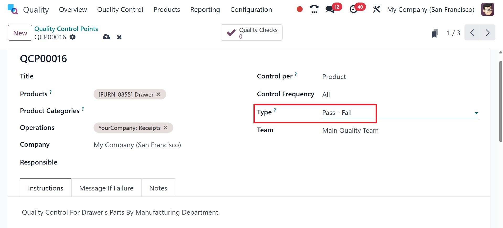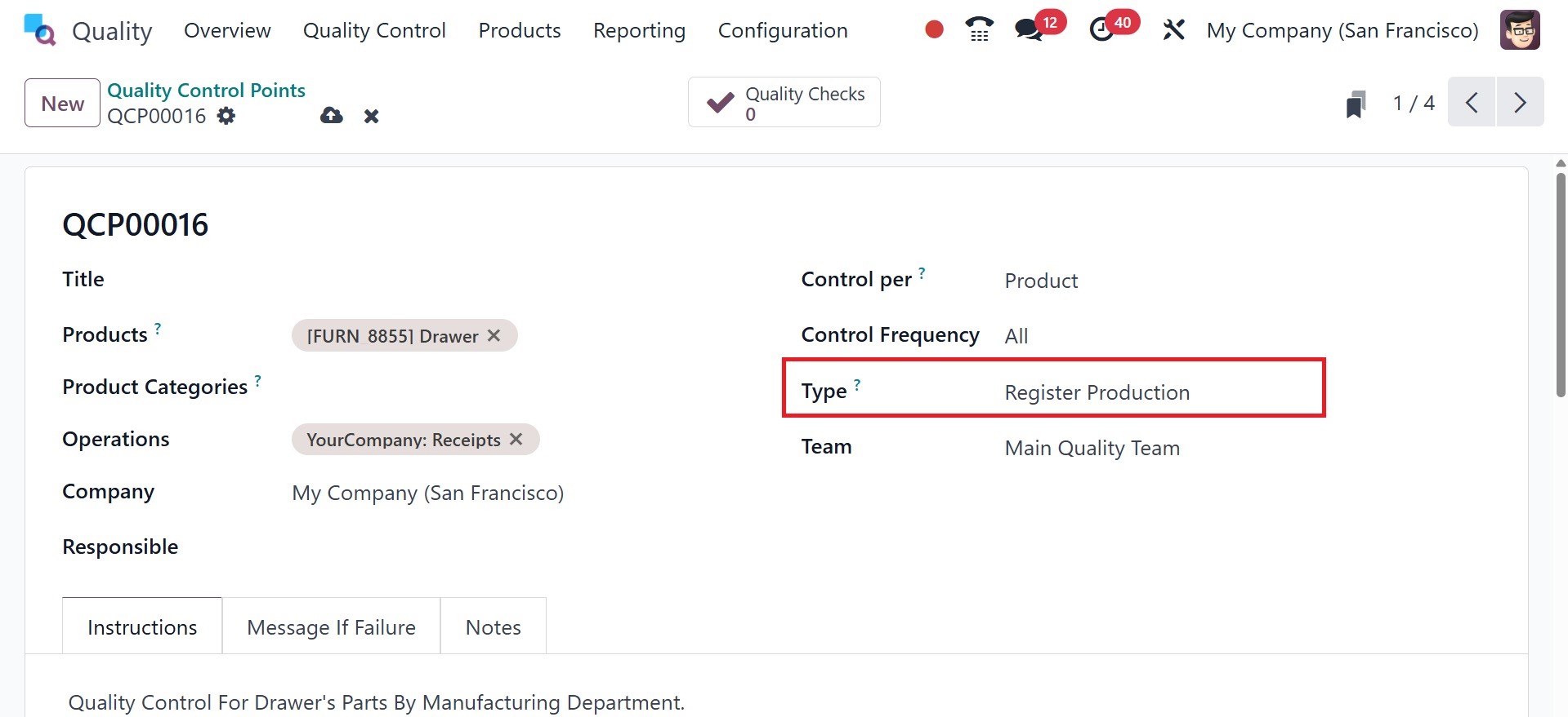 of the Quality Control Points
