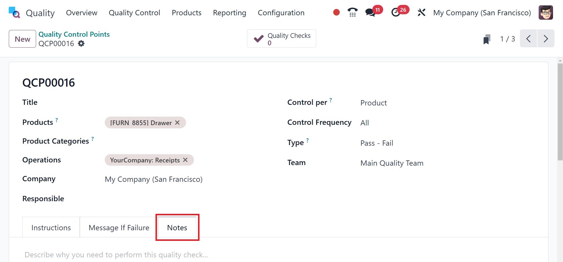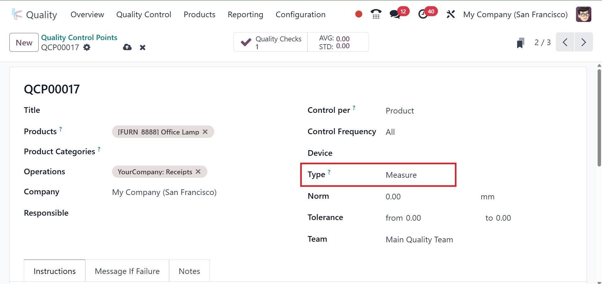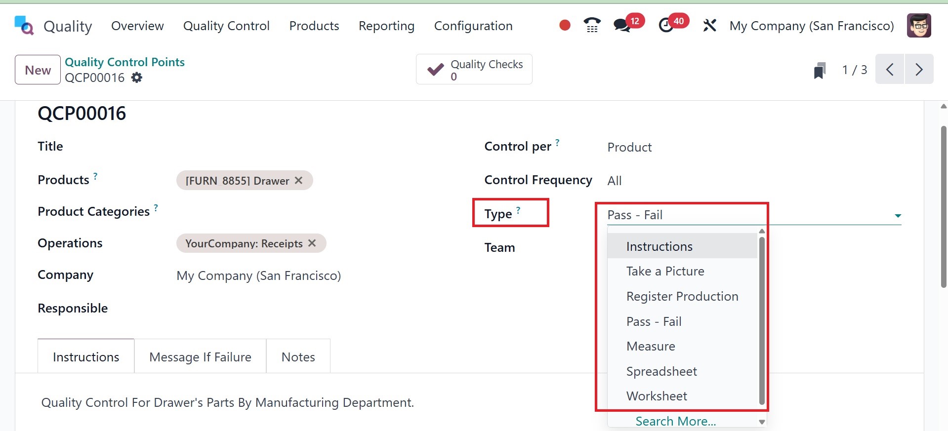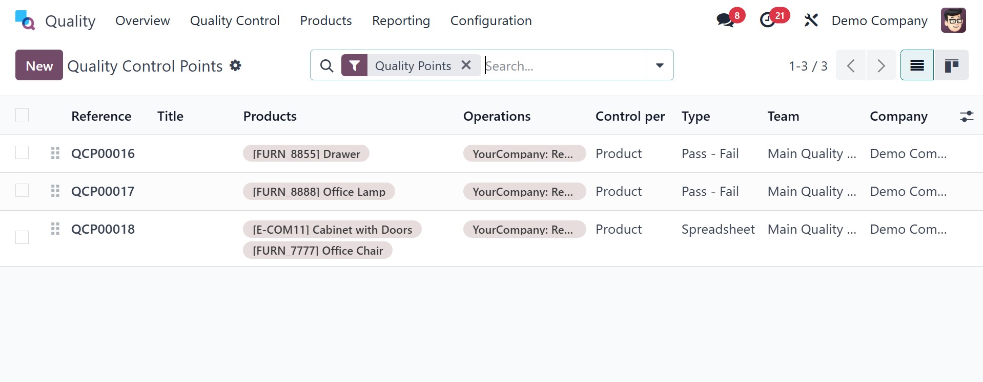 of the Quality Control Points