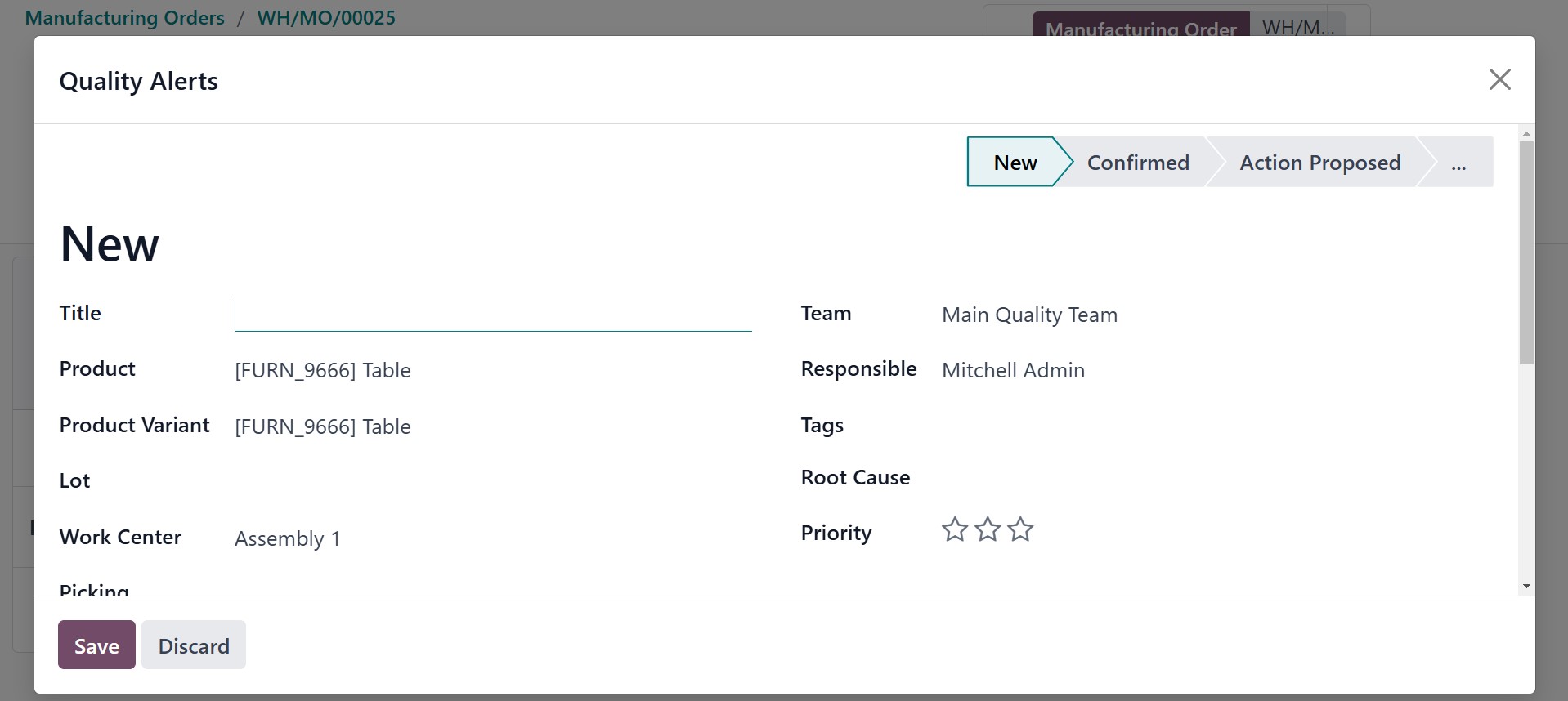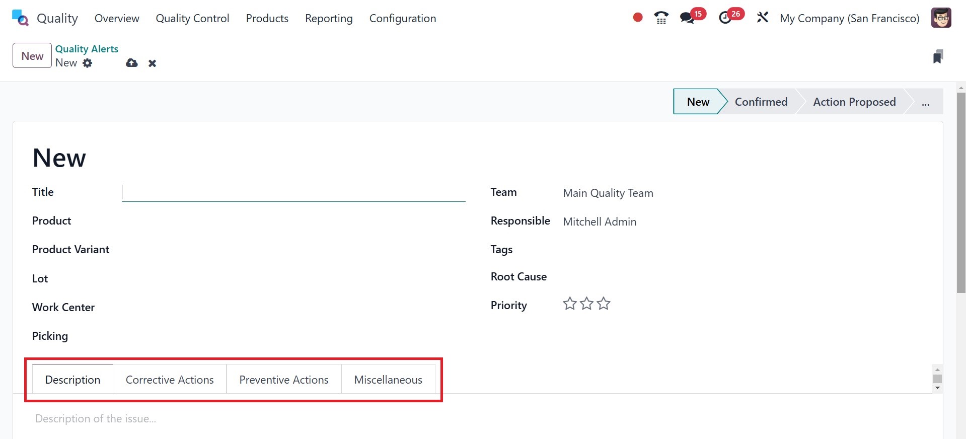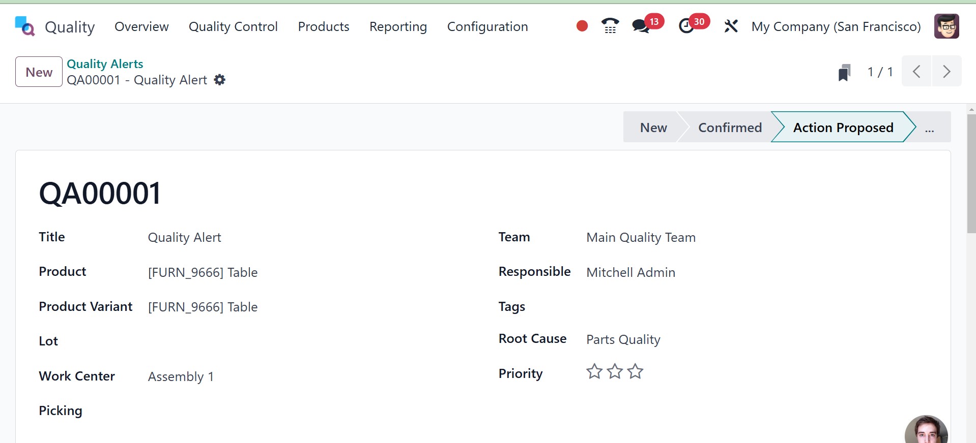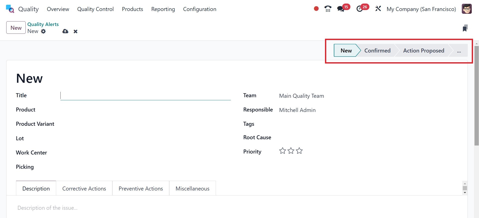 Quality Alert stages are NEW,