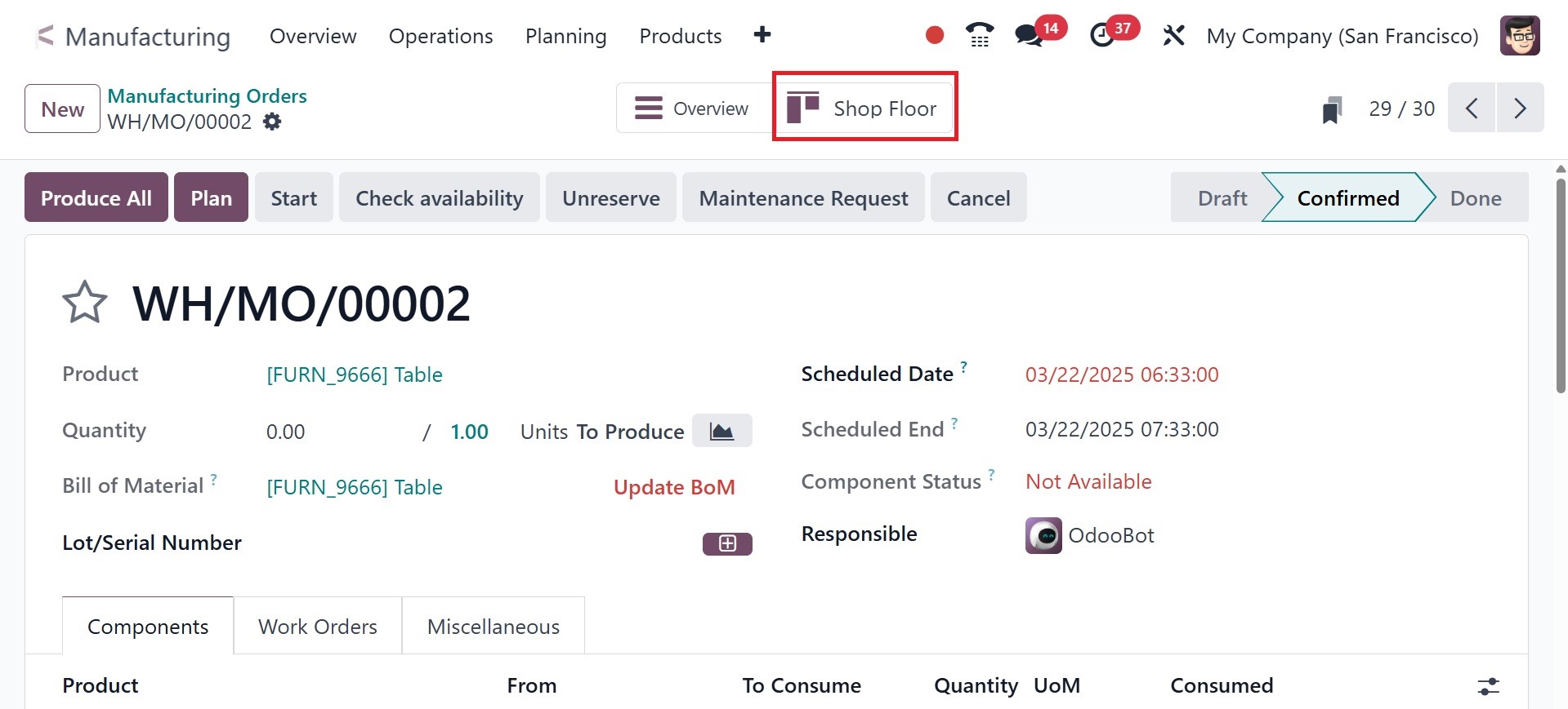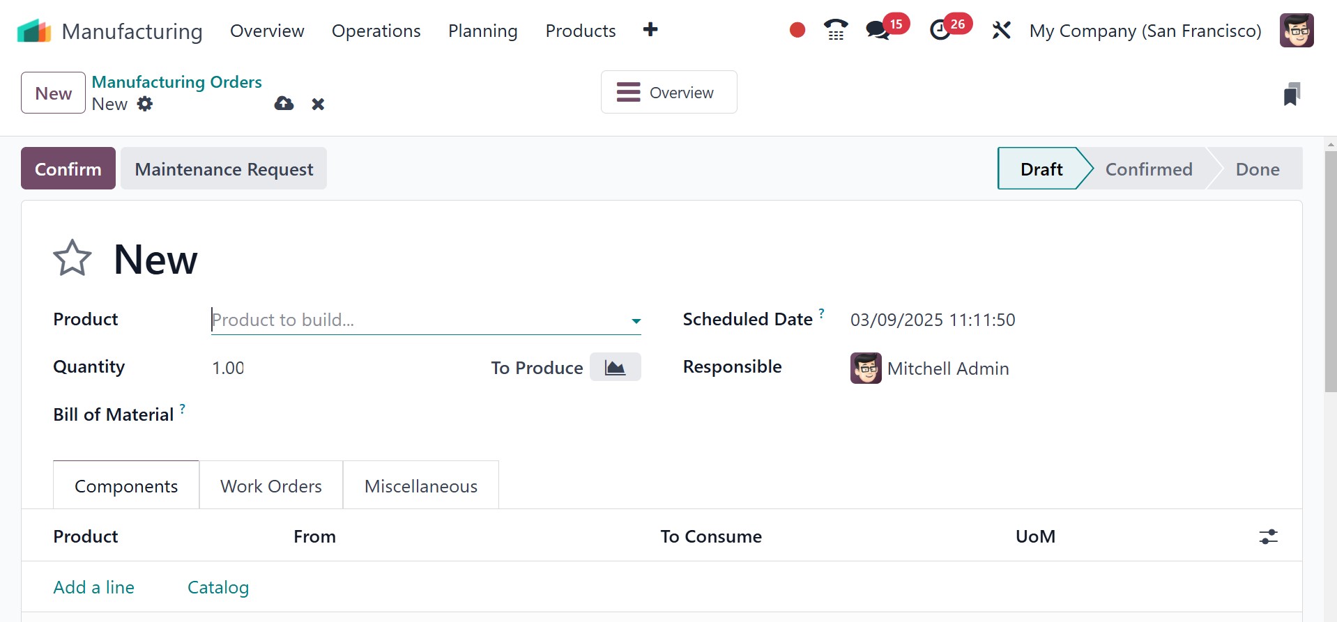 Odoo 18 Manufacturing module.