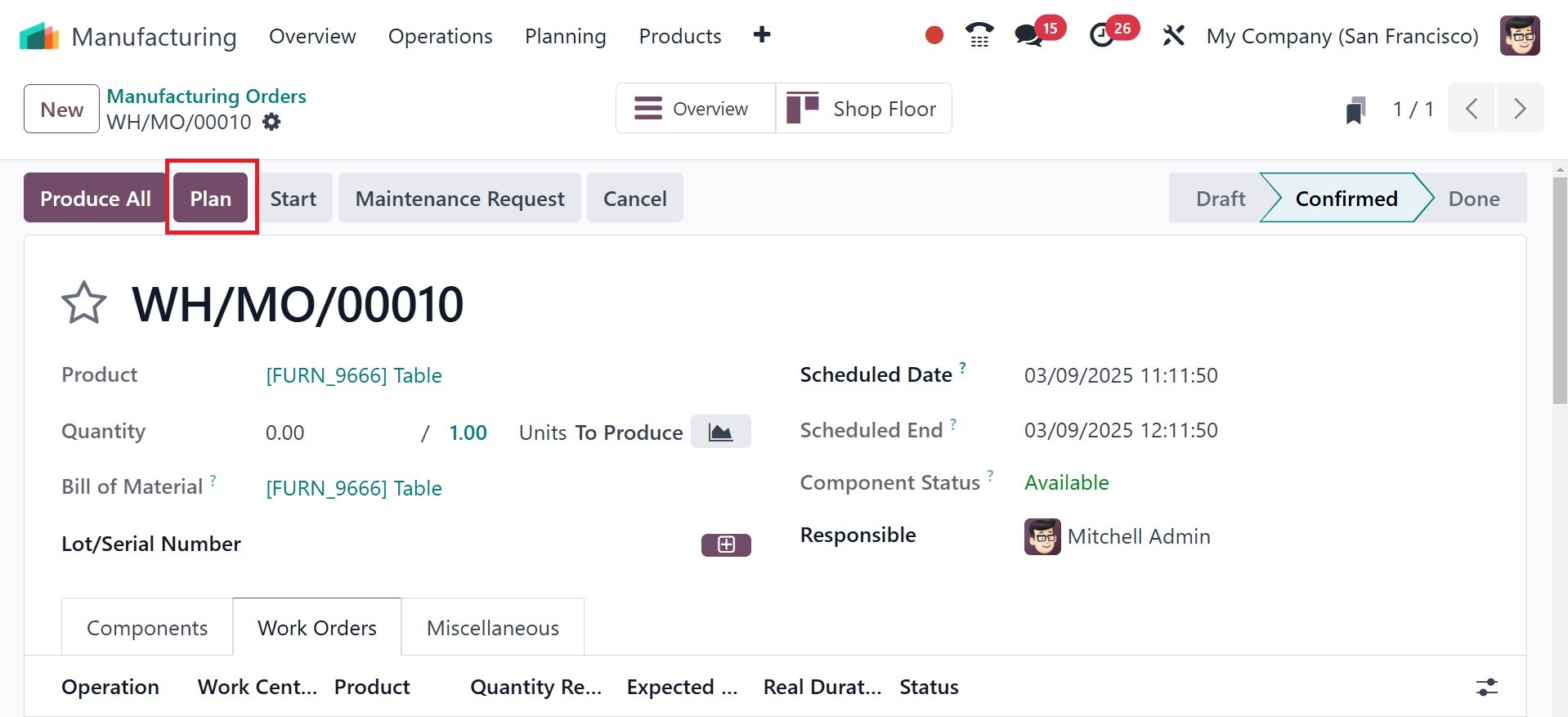 manufacturing order's planned
