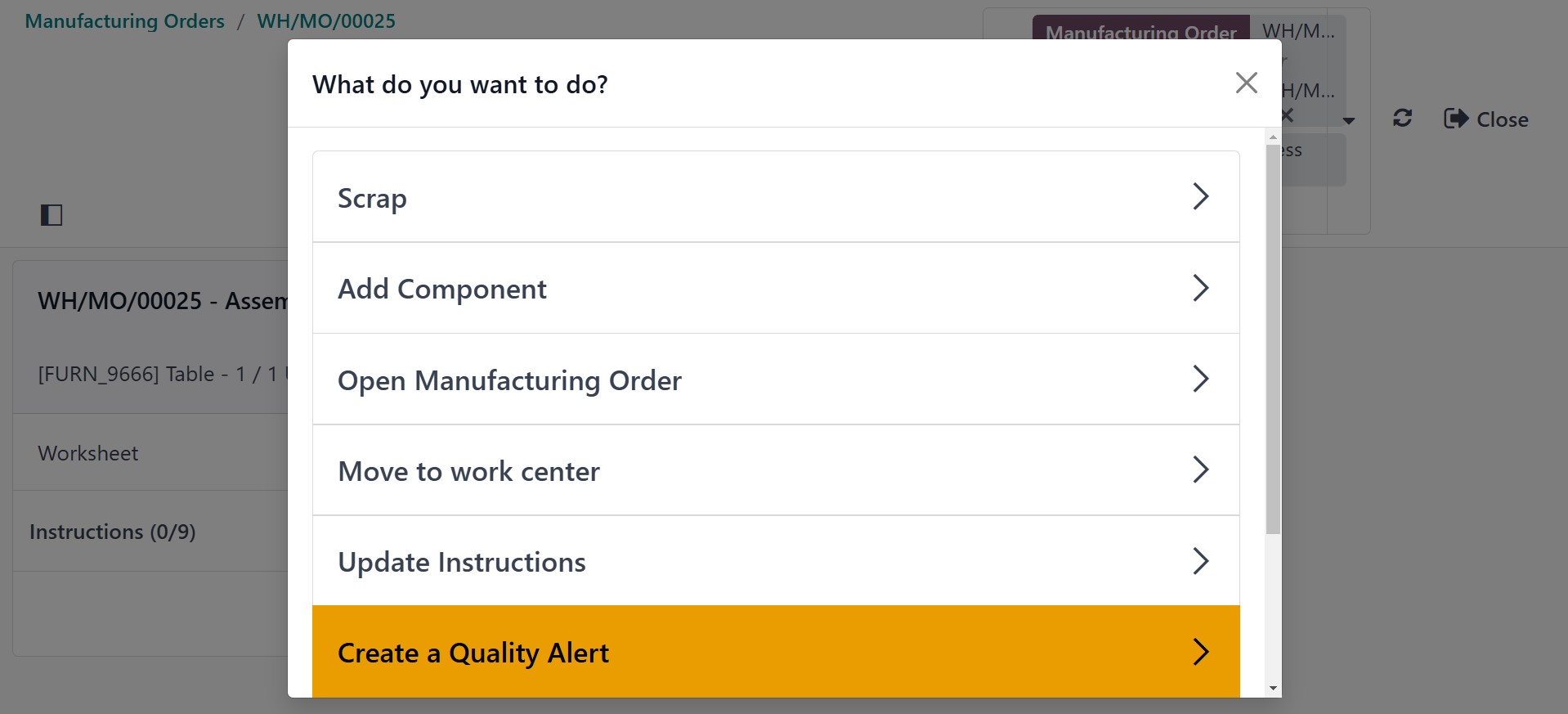 Manufacturing Orders menu.