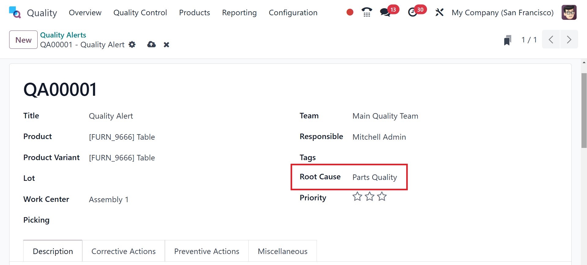 one quality alert generated