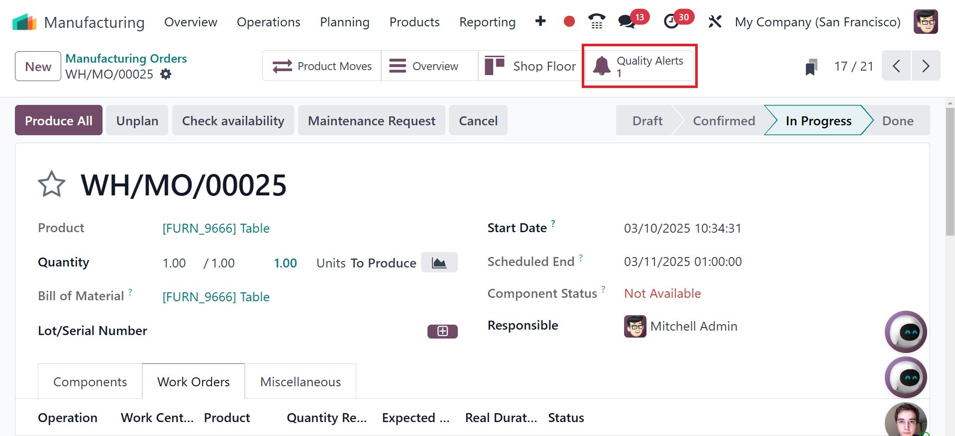 in the Manufacturing Orders