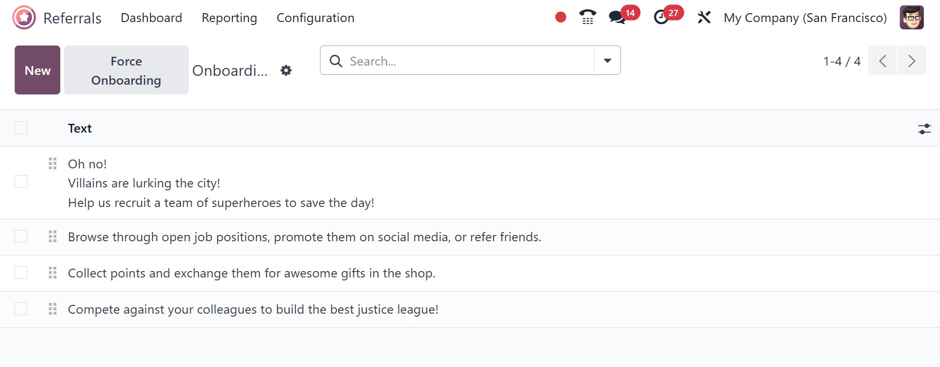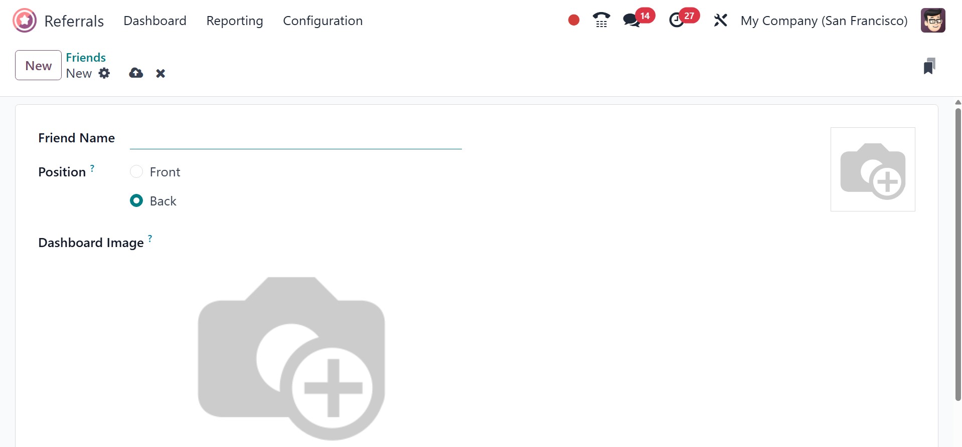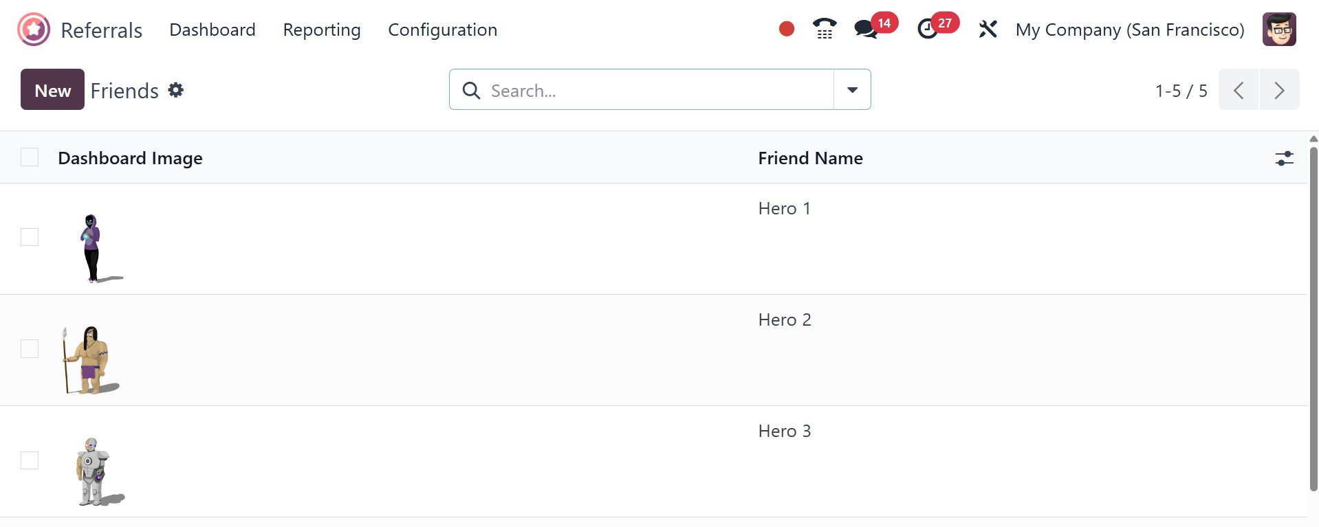The Configuration feature of Odoo 18 Referrals comprises friends,