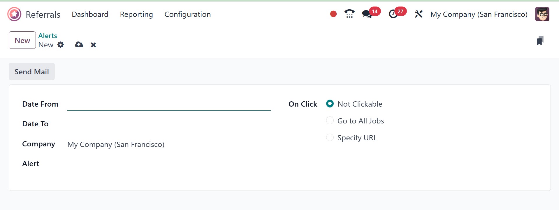 Not Clickable, and Specify URL. To send the alert mail to the staff,