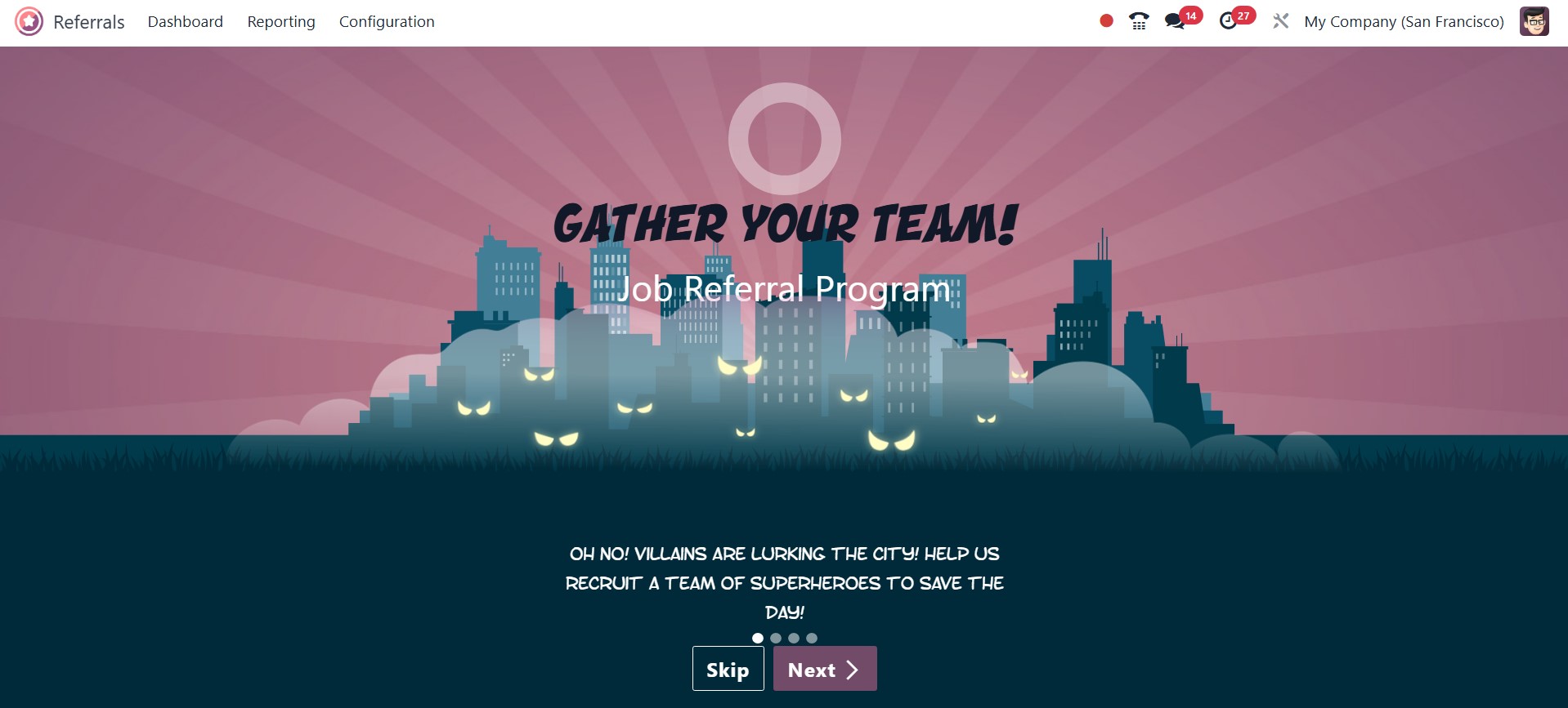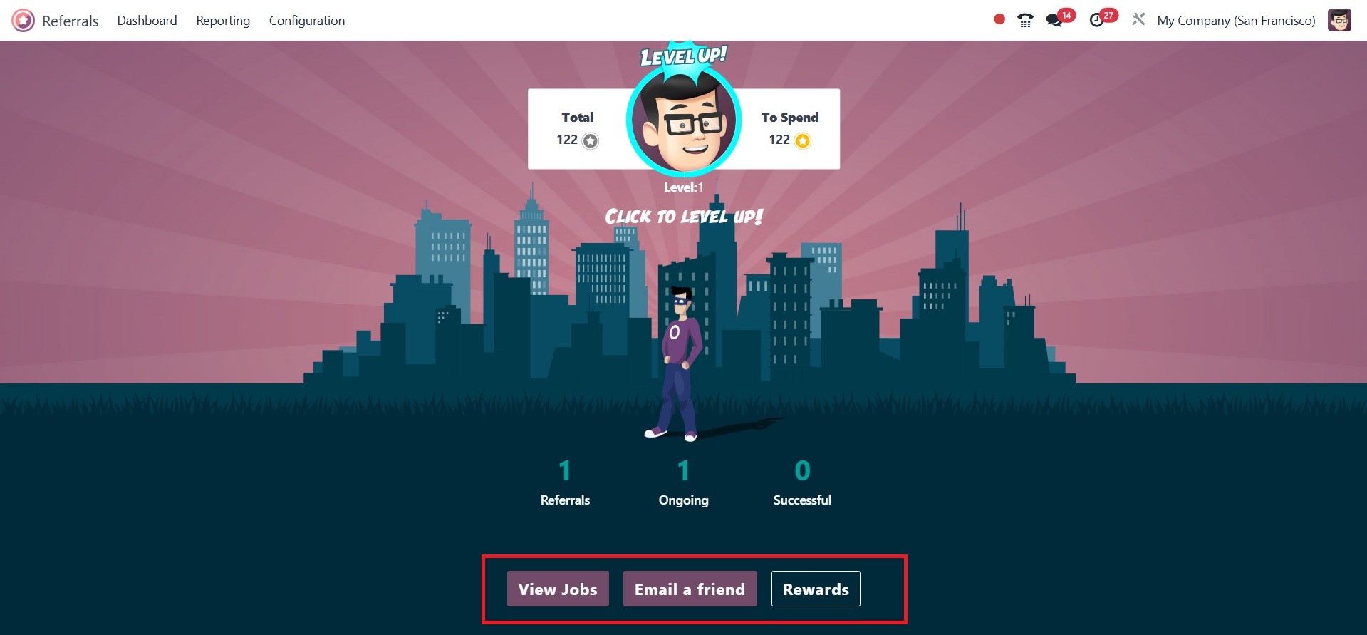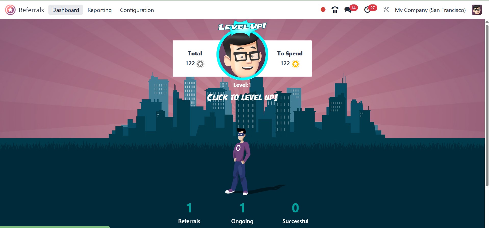 functions. Moving to the Dashboard screen of the Odoo 18 Referral