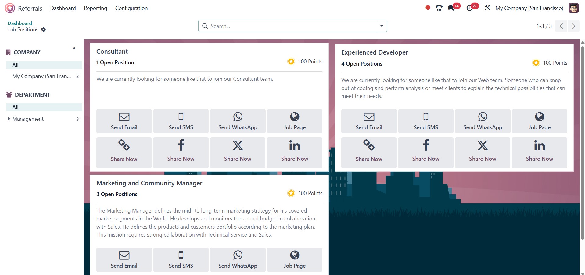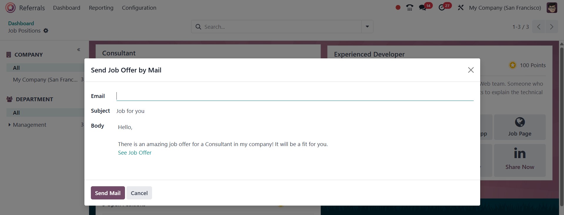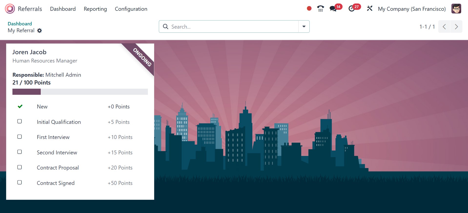 functions. Moving to the Dashboard screen of the Odoo 18 Referral