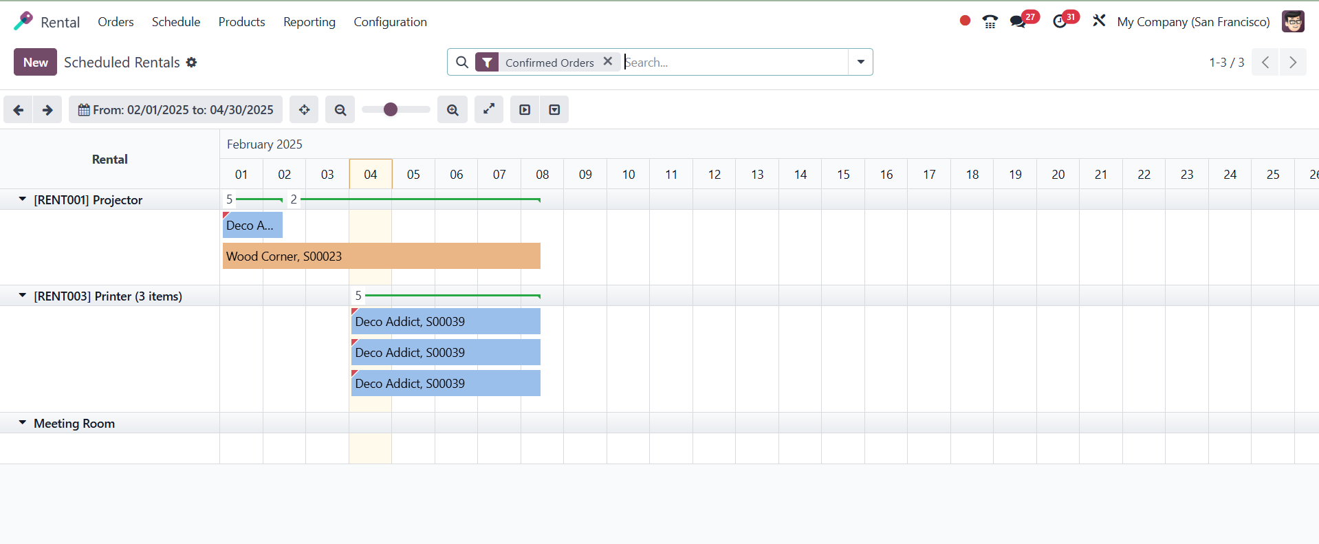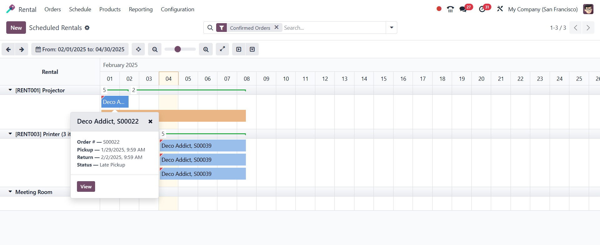 All scheduled rental orders will be available under the rental