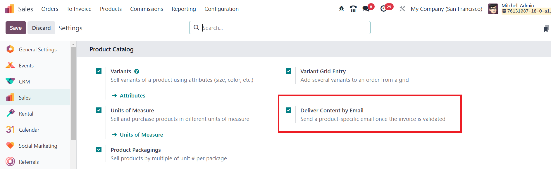 The Deliver Content by Email feature in Odoo 18 Enterprise Sales