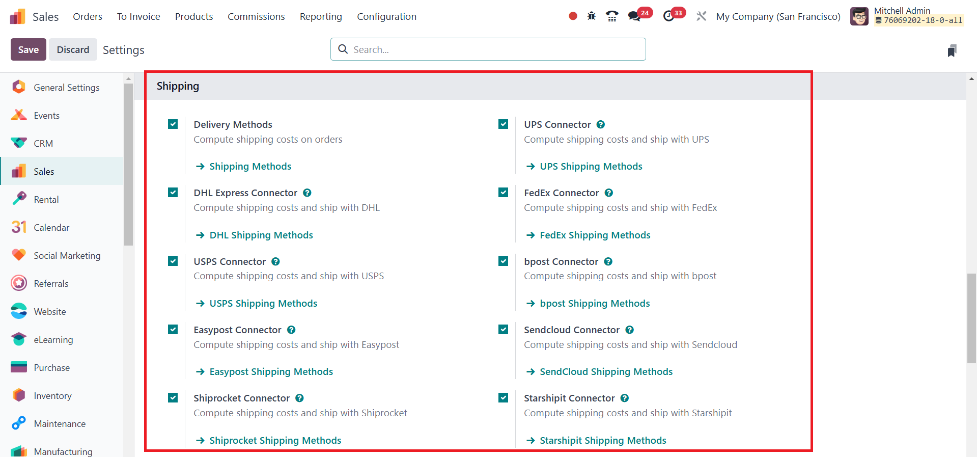 The Shipping Methods feature in Odoo 18 Sales plays a crucial role in