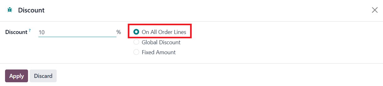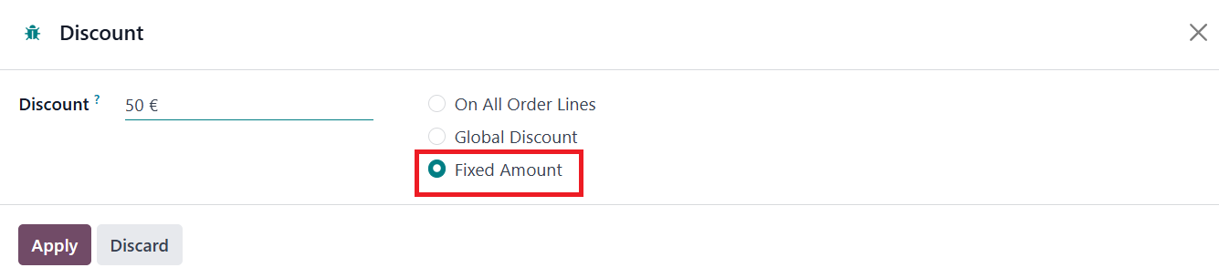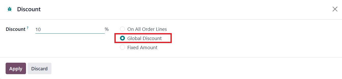 Once applied, Odoo adjusts the final order total accordingly, and the
