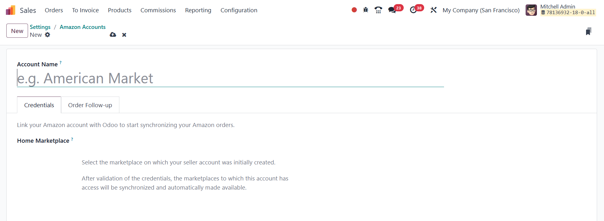 Odoo allows users to register their Amazon seller account within the