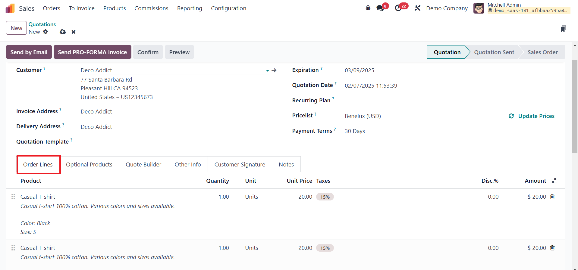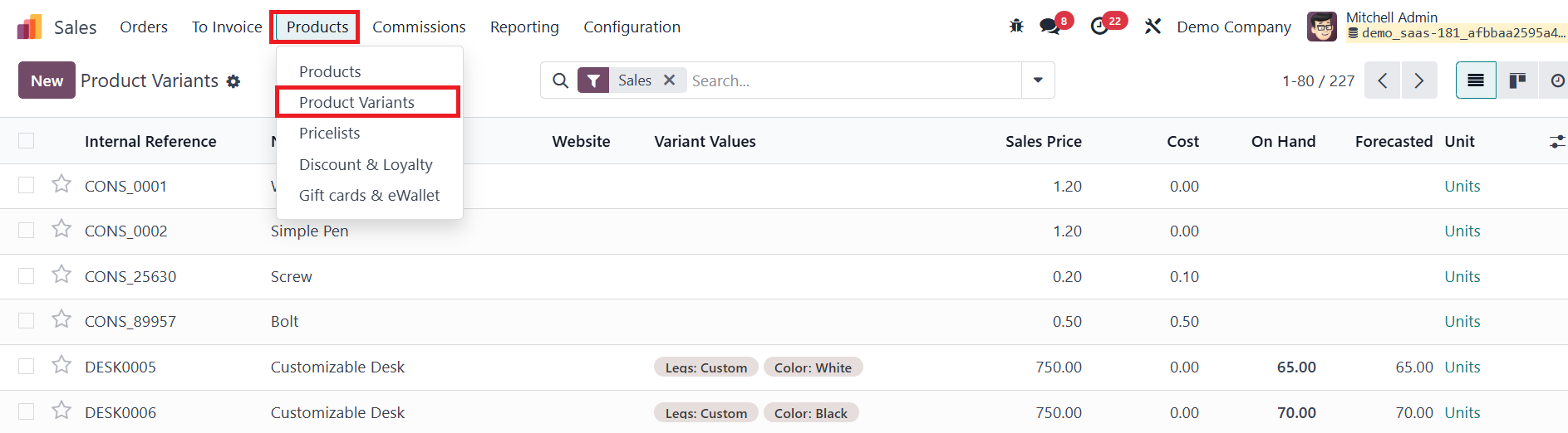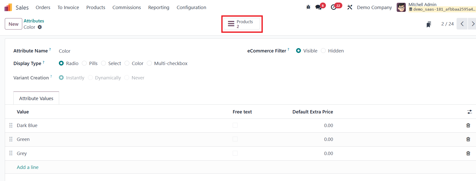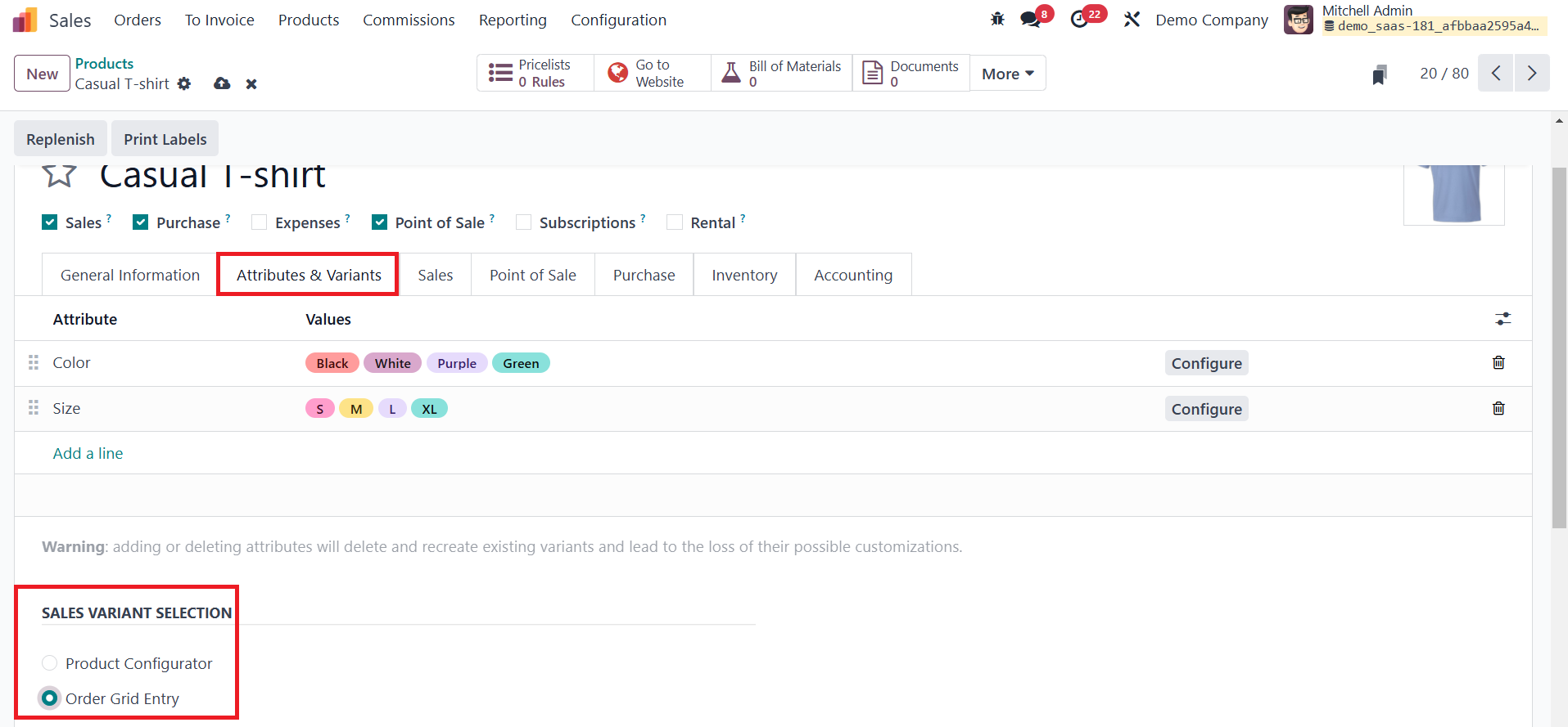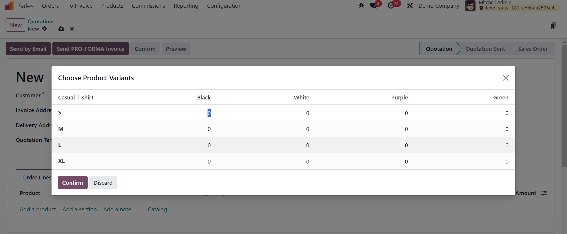 quotations and sales orders, Odoo 18 introduces the Variant Grid