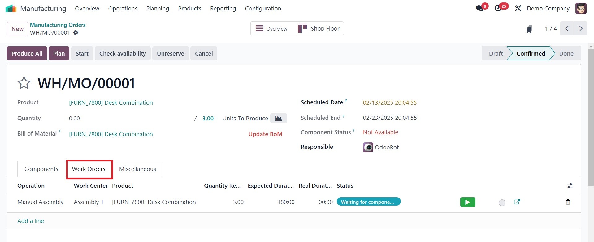 the work center. Click the