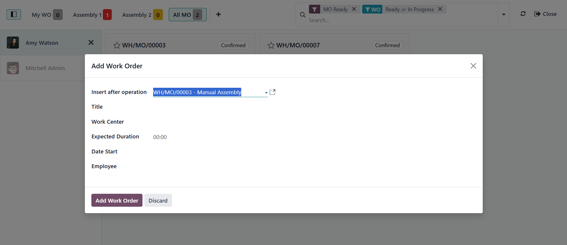 option to Add Work Order.
