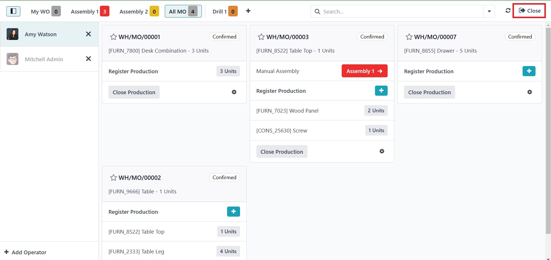 clicking the Close Production