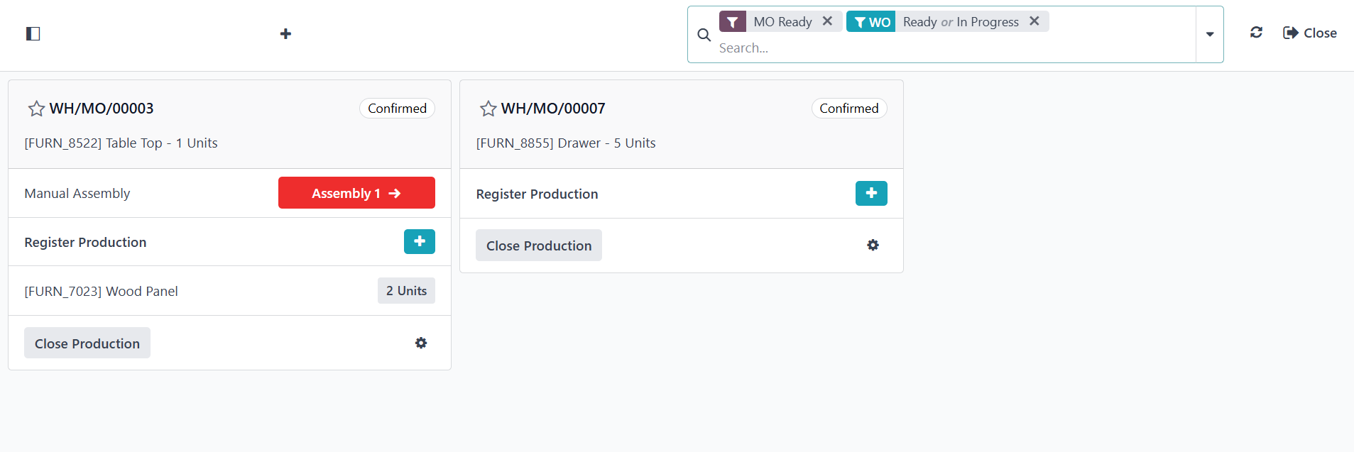 all manufacturing orders that