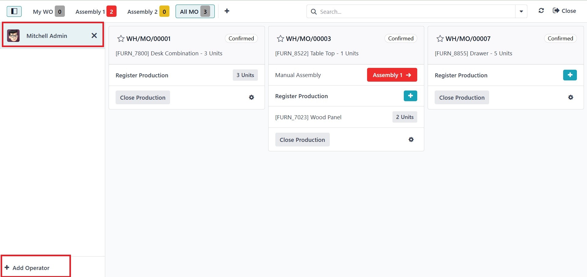 Add Operator button can then